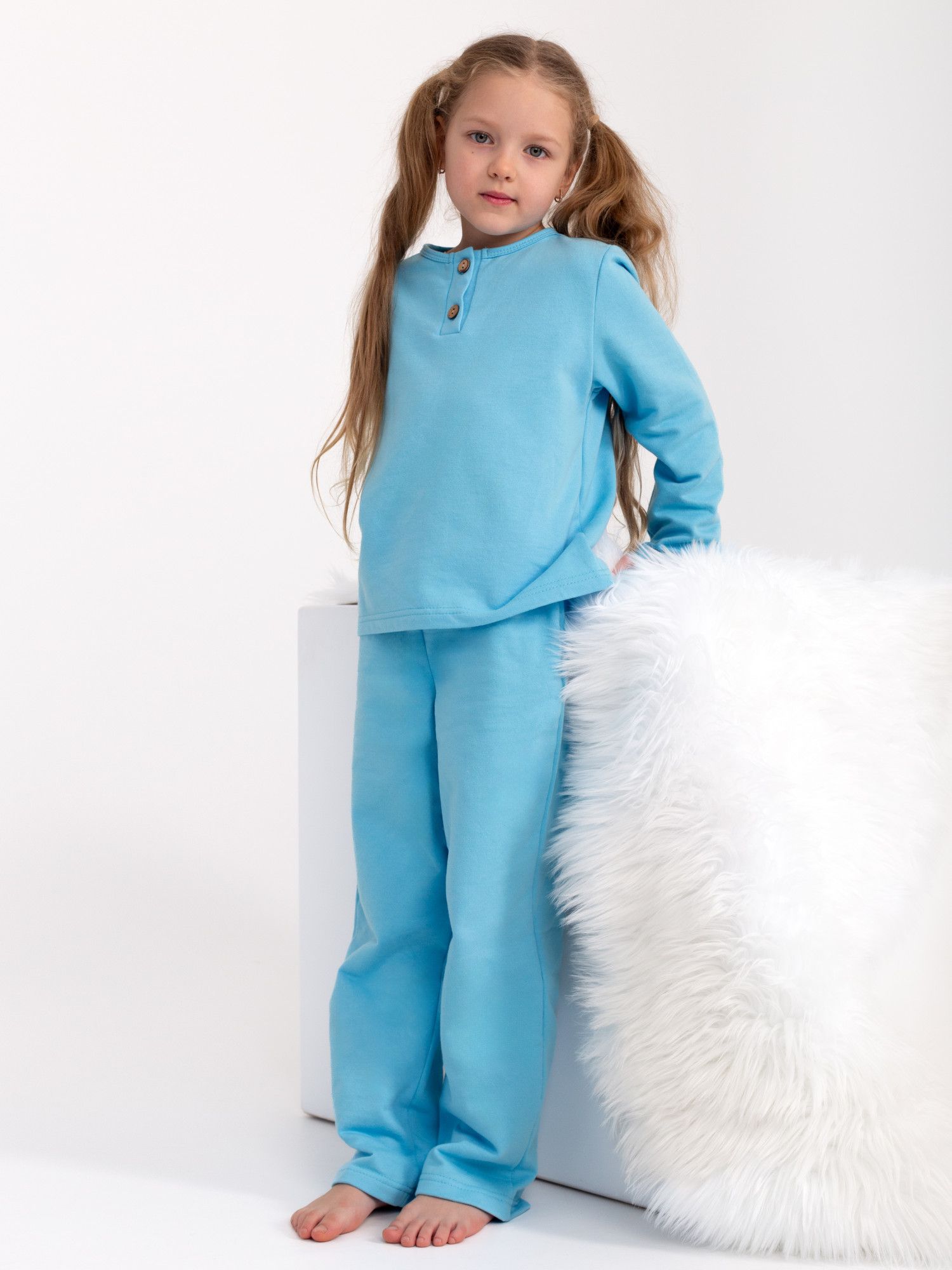 Пижама детская футер начес с брюками СТЕША ГОЛУБОЙ