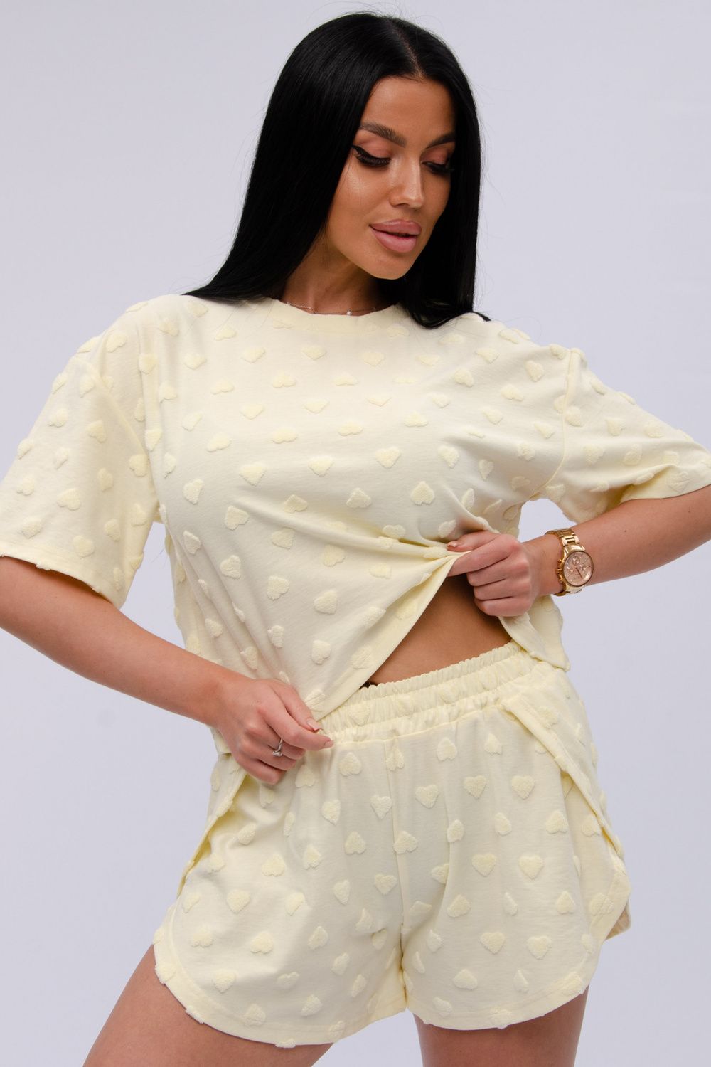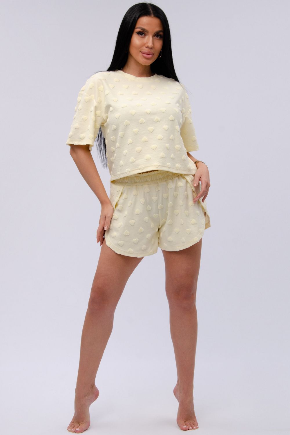 Пижама выполнена из мягкой трикотажной ткани, изготовленной из натурального хлопка, что предоставляет вам максимальное удобство. Короткий рукав футболки и удобные шорты с резинкой обеспечивают свободу движений. Свободный крой и оверсайз стиль делают её подходящей для всех, включая кормящих и беременных девушек. Этот комплект двойка — отличный выбор не только для дома и отдыха. Премиум качество и долговечность материалов гарантируют, что вы будете наслаждаться этой одеждой долгое время.