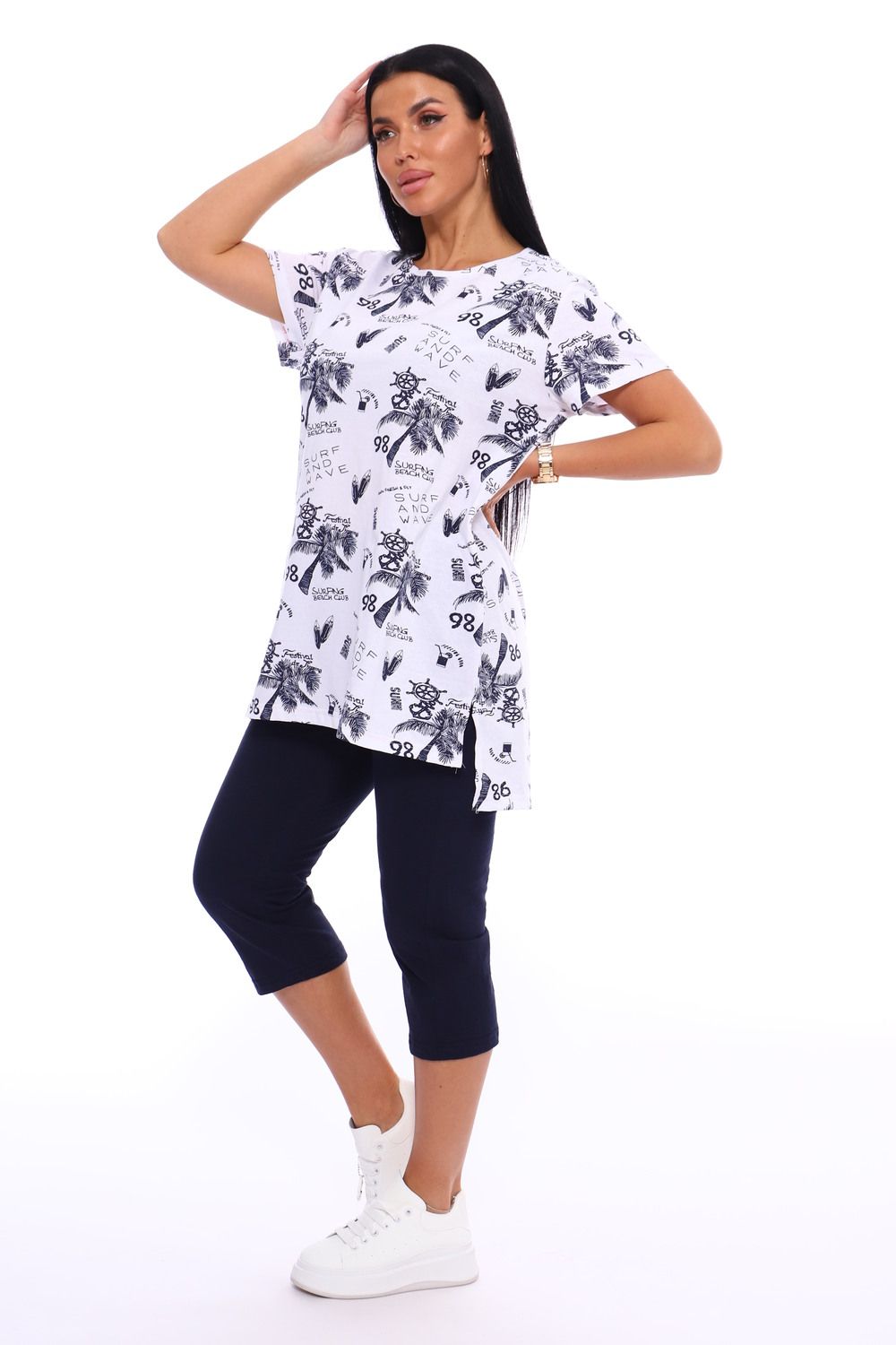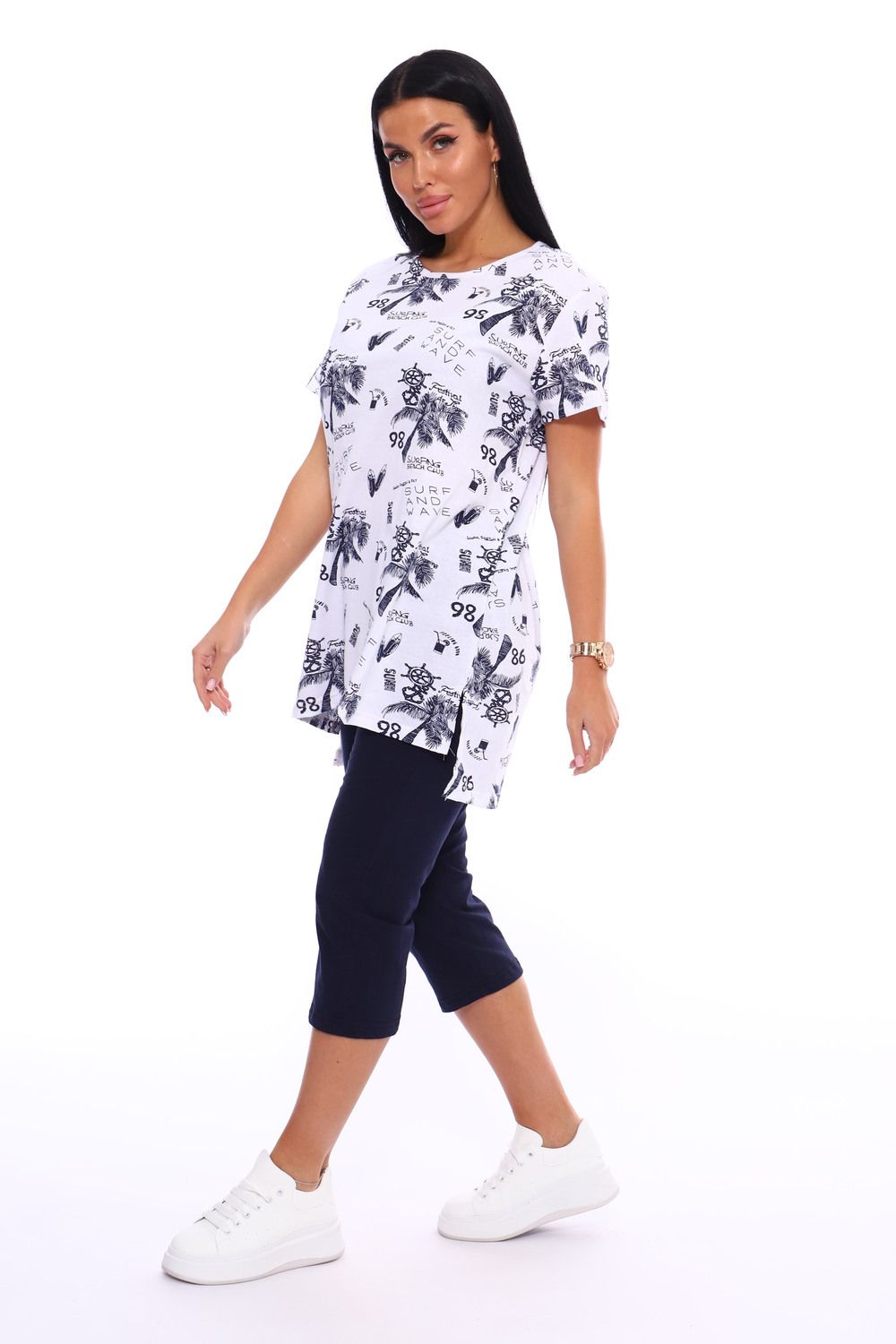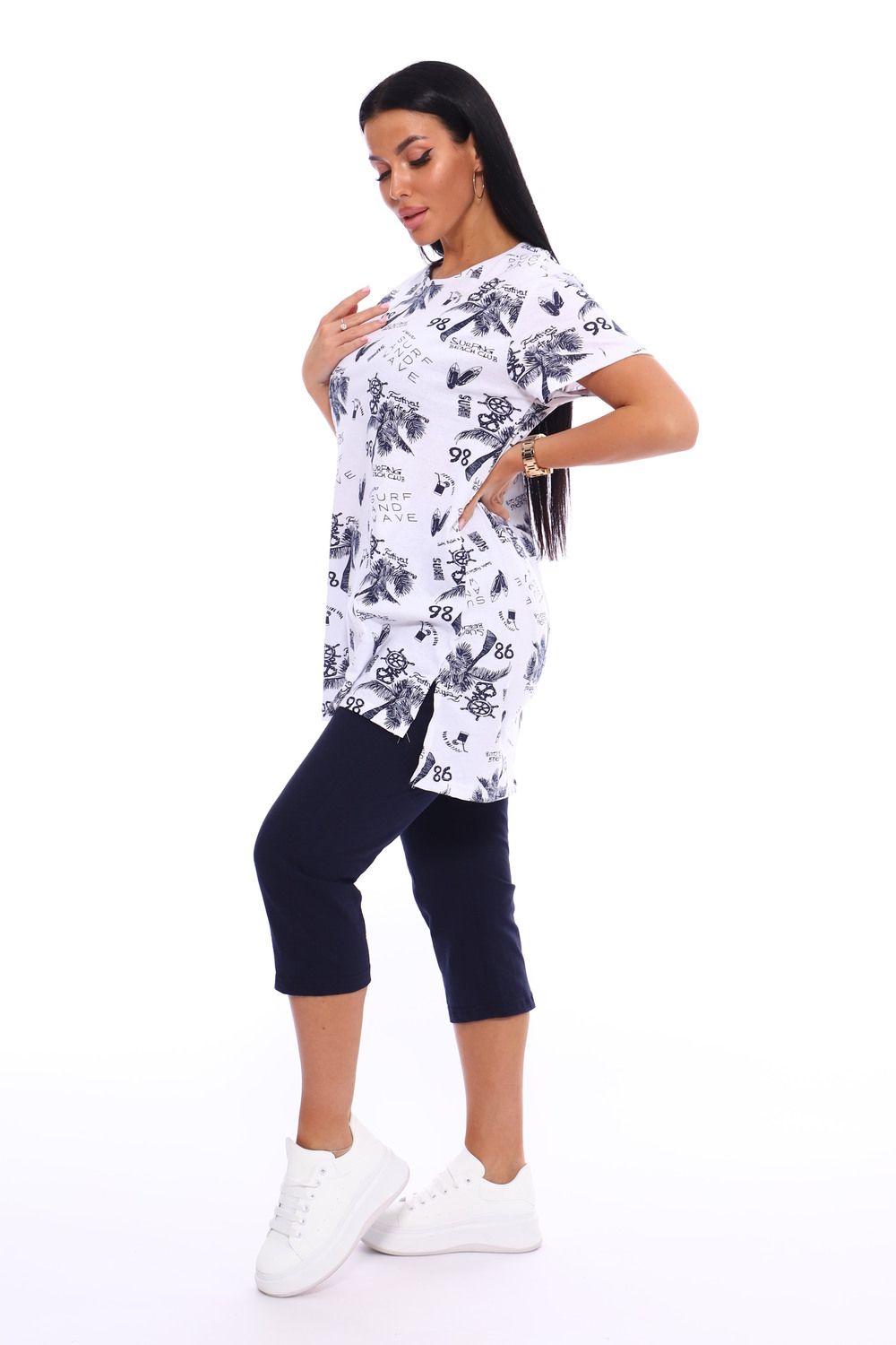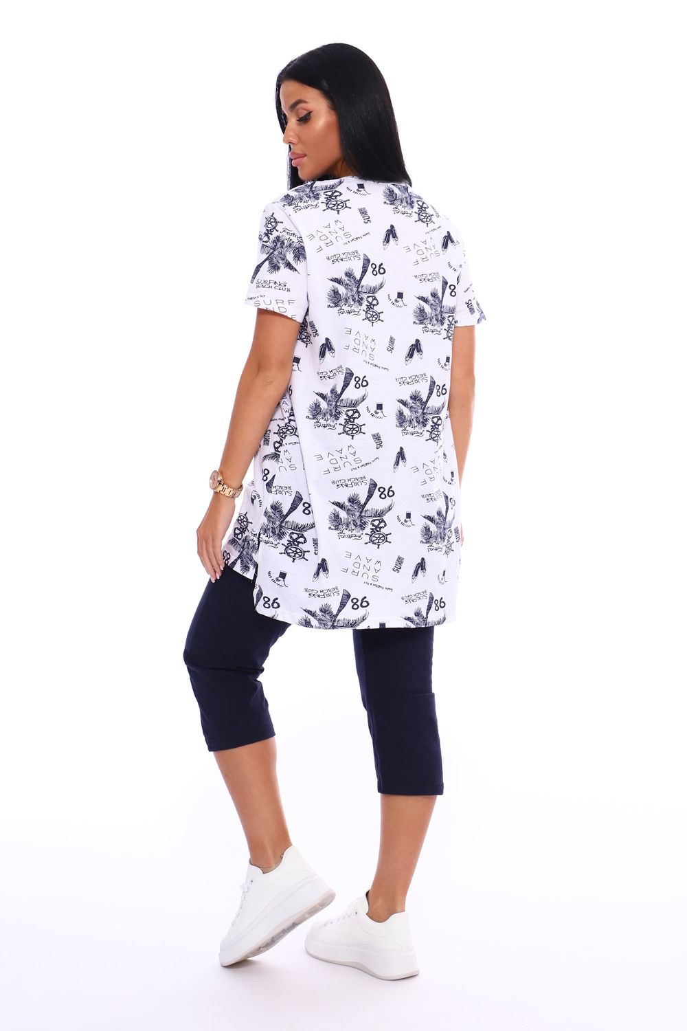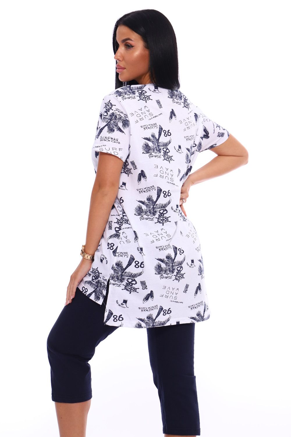 Пижама костюм с удлиненной футболкой и бриджами, Арт. 516 - белый+синий