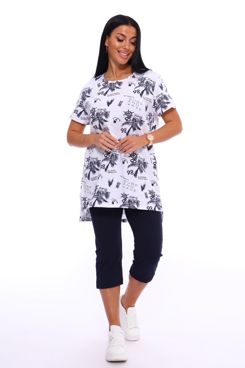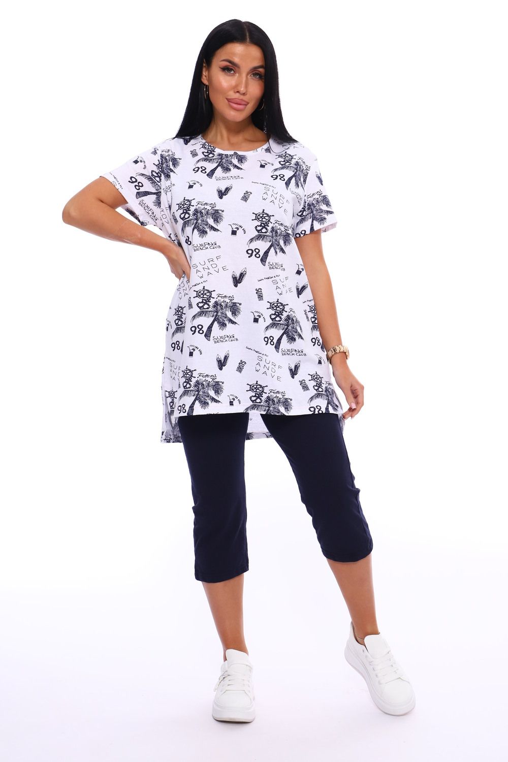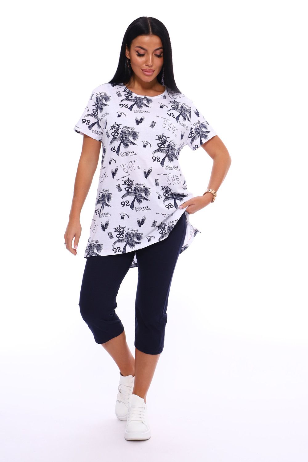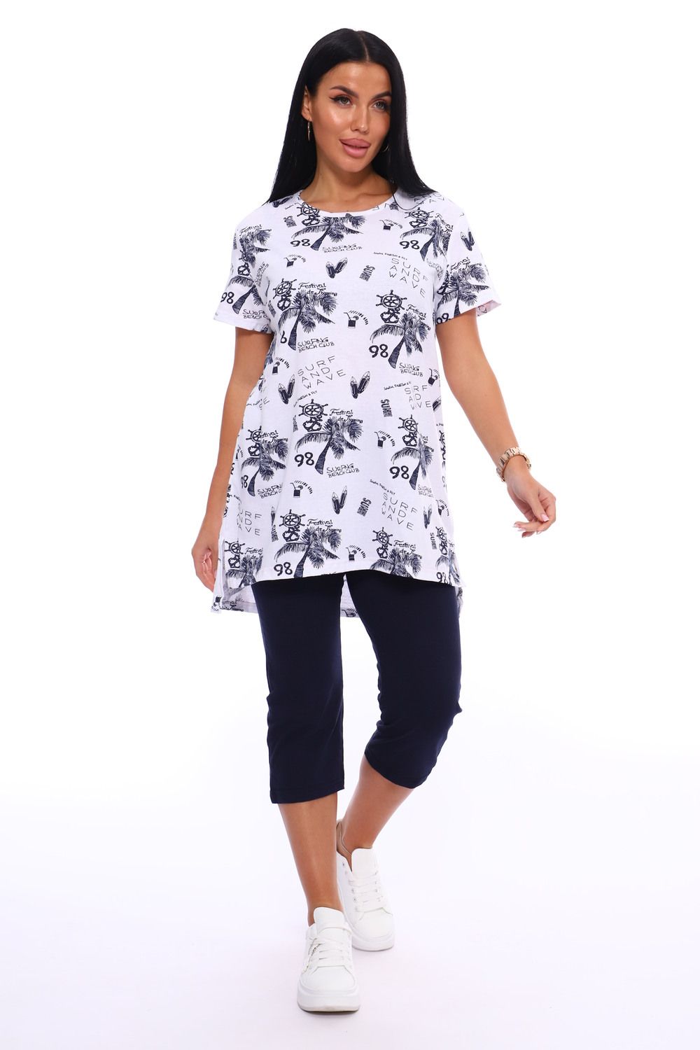 Пижама костюм с удлиненной футболкой и бриджами, Арт. 516 - белый+синий
