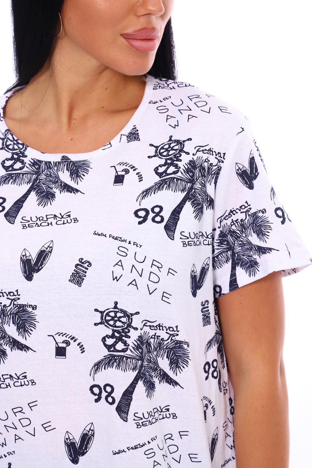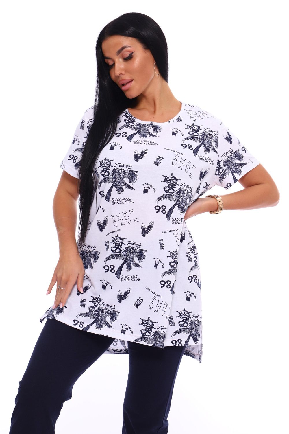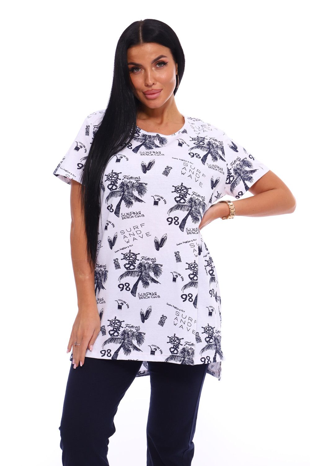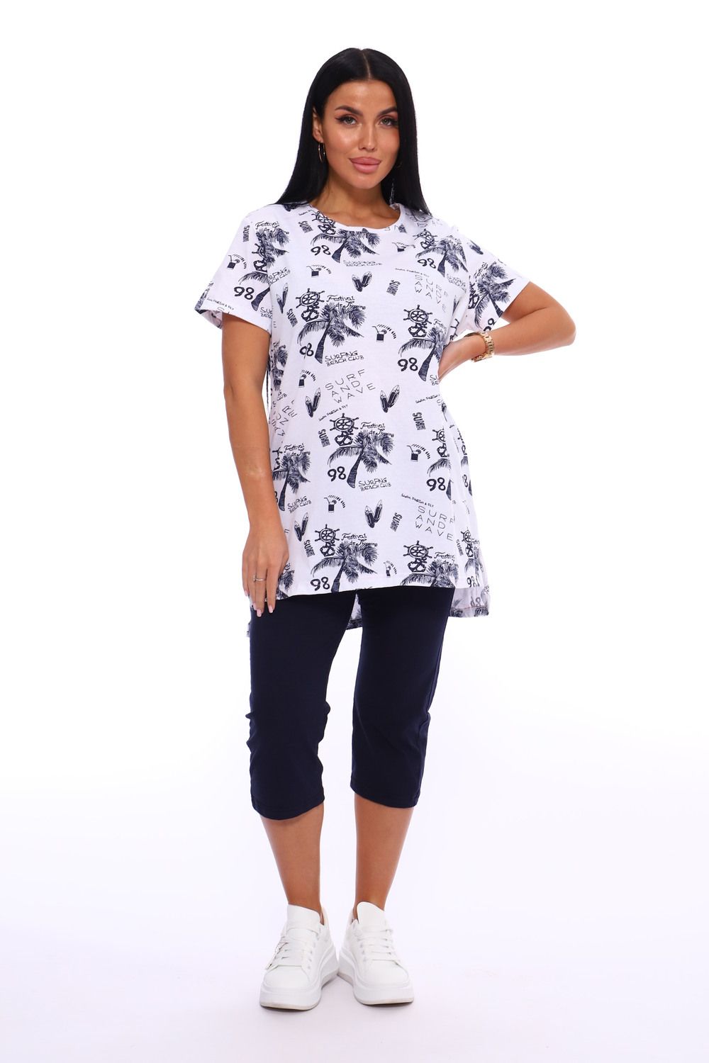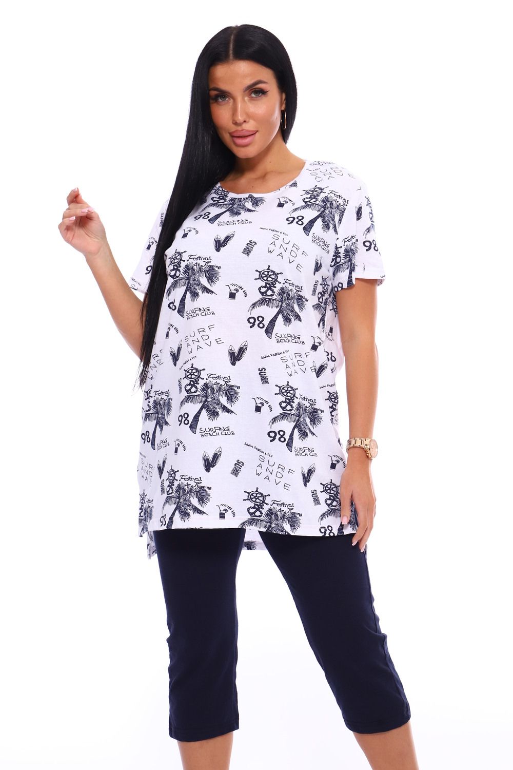 Пижама костюм с удлиненной футболкой и бриджами, Арт. 516 - белый+синий