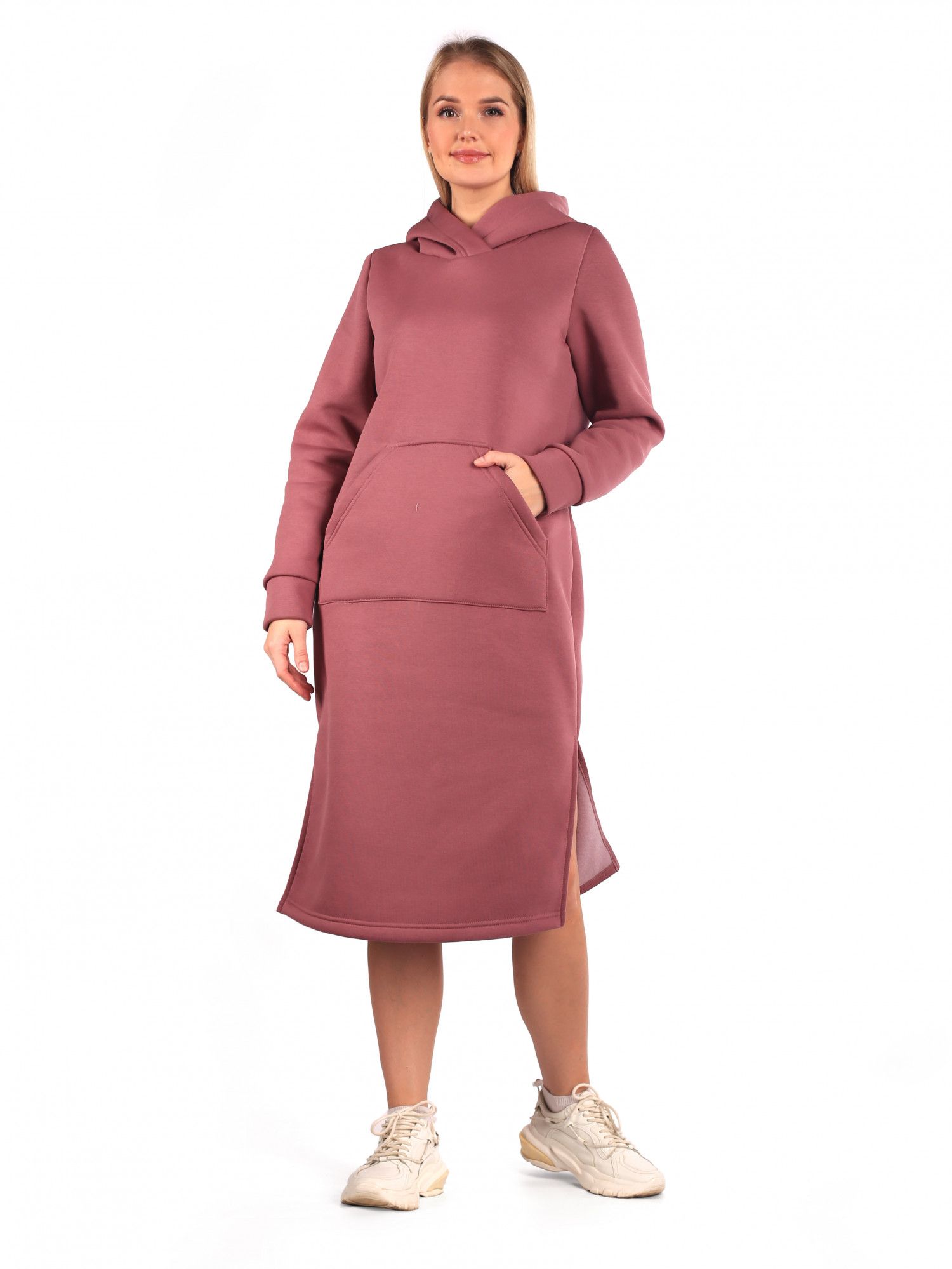 Это платье для счастливых и свободных! Оно дарит невероятный комфорт, удовольствие и чувство лёгкости! Базовое платье в спортивном стиле с карманом кенгуру и капюшоном. Можно спрятаться в платье как в одеяло, модель выполнена из трикотажного полотна с начесом, что гарантирует комфорт и тепло в холодную погоду. Платье выполнено из футера 3х нитки с начесом. За счет хлопка 65% ткань очень комфортна к телу, а 35% пэ делает ее износостойким!