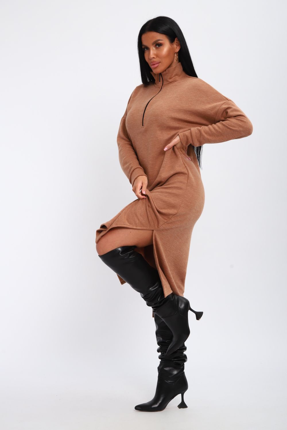 Теплое платье от бренда CHEEZZY согреет Вас в прохладное время года. Высокий воротник на молнии поможет отрегулировать линию декольте. Прямой крой позволяет носить платье как с поясом, так и без него. Два разреза по бокам добавят в образ загадочность, что обязательно привлечет к Вам внимание и не оставит без комплиментов!