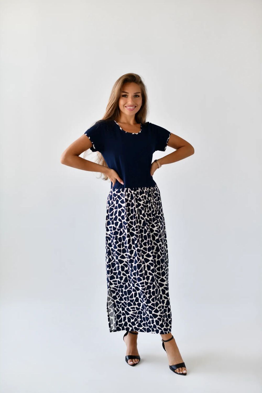 Легкое длинное стильное летнее женское платье «Премьера» из вискозы 100% от российского текстильного бренда Batistcorp Ivanovo (Батист) станет идеальным выбором для жаркого летнего дня. Воздушное платье миди с округлым вырезом горловины и коротким рукавом обеспечит комфорт и свободу движений. Платье прямого А-силуэта состоит из верхней трикотажной части, имитирующей футболку, и нижней части, изготовленной из штапельного полотна. Пышная юбка с классическими вырезами в боковых швах собрана на талии в сборку, которая декорируют силуэт, делая его женственным и нарядным. Молодежное платье с принтом. За счет свободного покроя платье красиво смотрится на любом типе фигуры. В нём вы будете чувствовать себя комфортно и уверенно в любой ситуации. Размерный ряд этого платья представлен в широком спектре, что позволяет каждой женщине найти подходящий размер и насладиться стильным образом на лето.