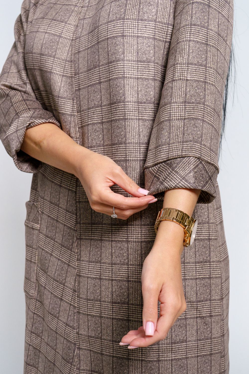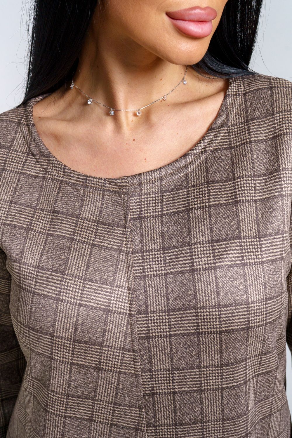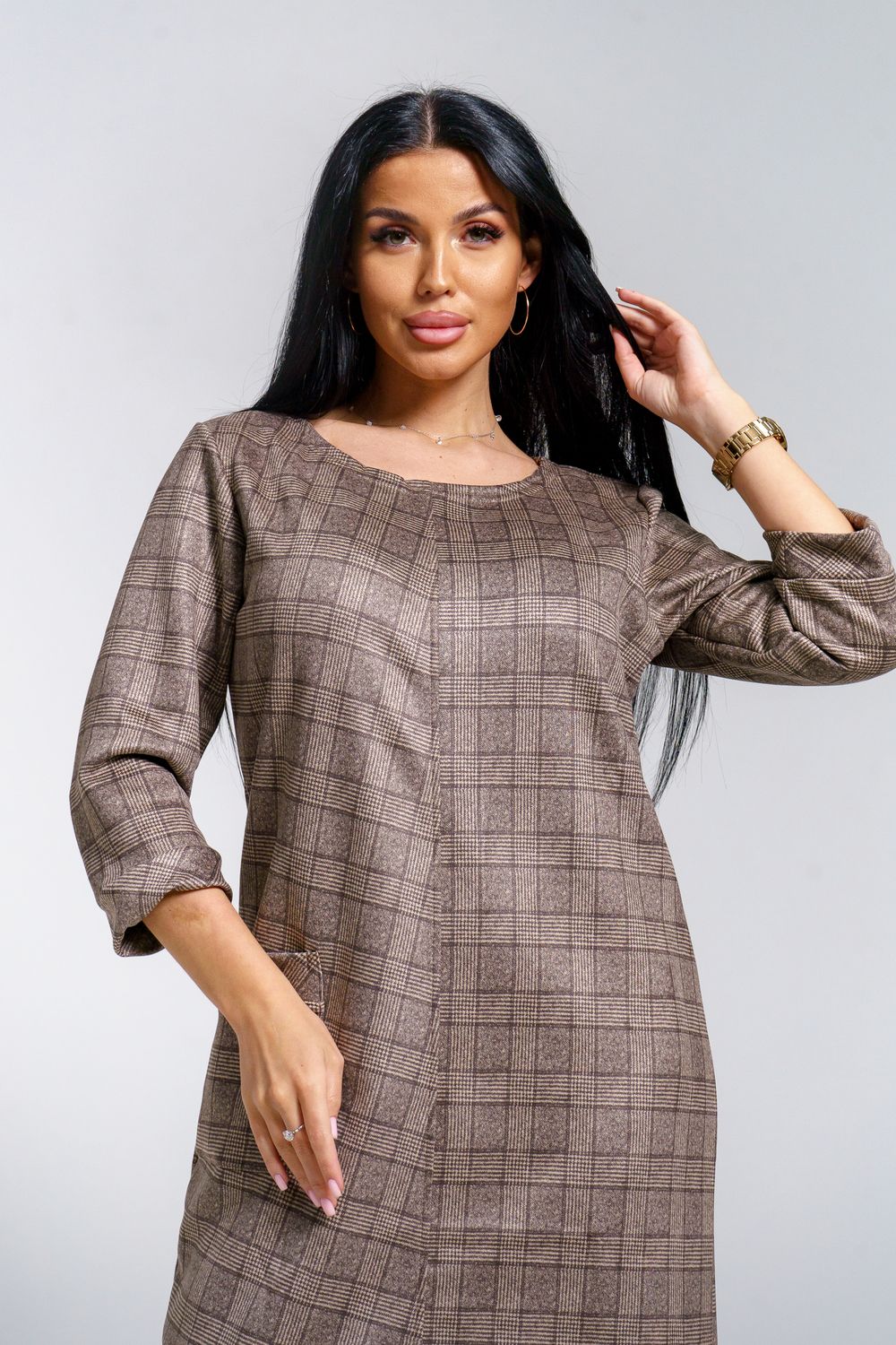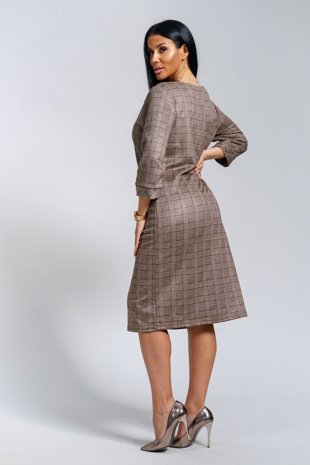 Платье женское офисное Состав: 30% микрофибра, 65% полиэстер, 5% лайкра Изысканное женское платье свободного покроя с рукавом средней длины, с оригинальным сочетанием направленности рисунка.
