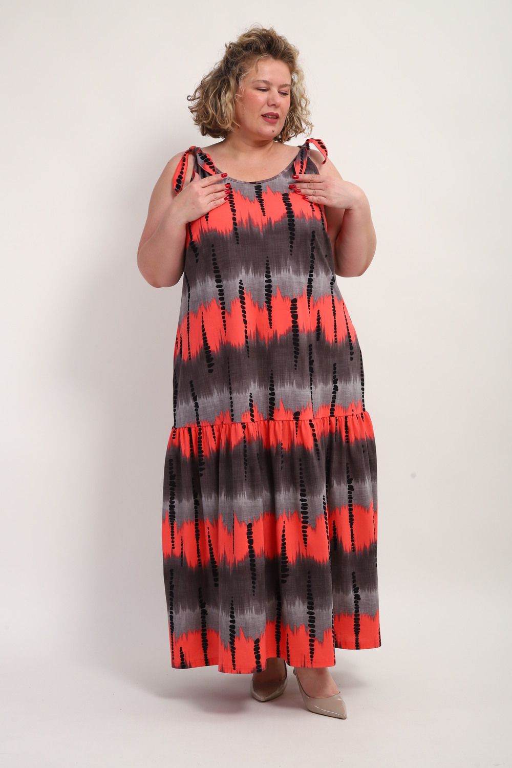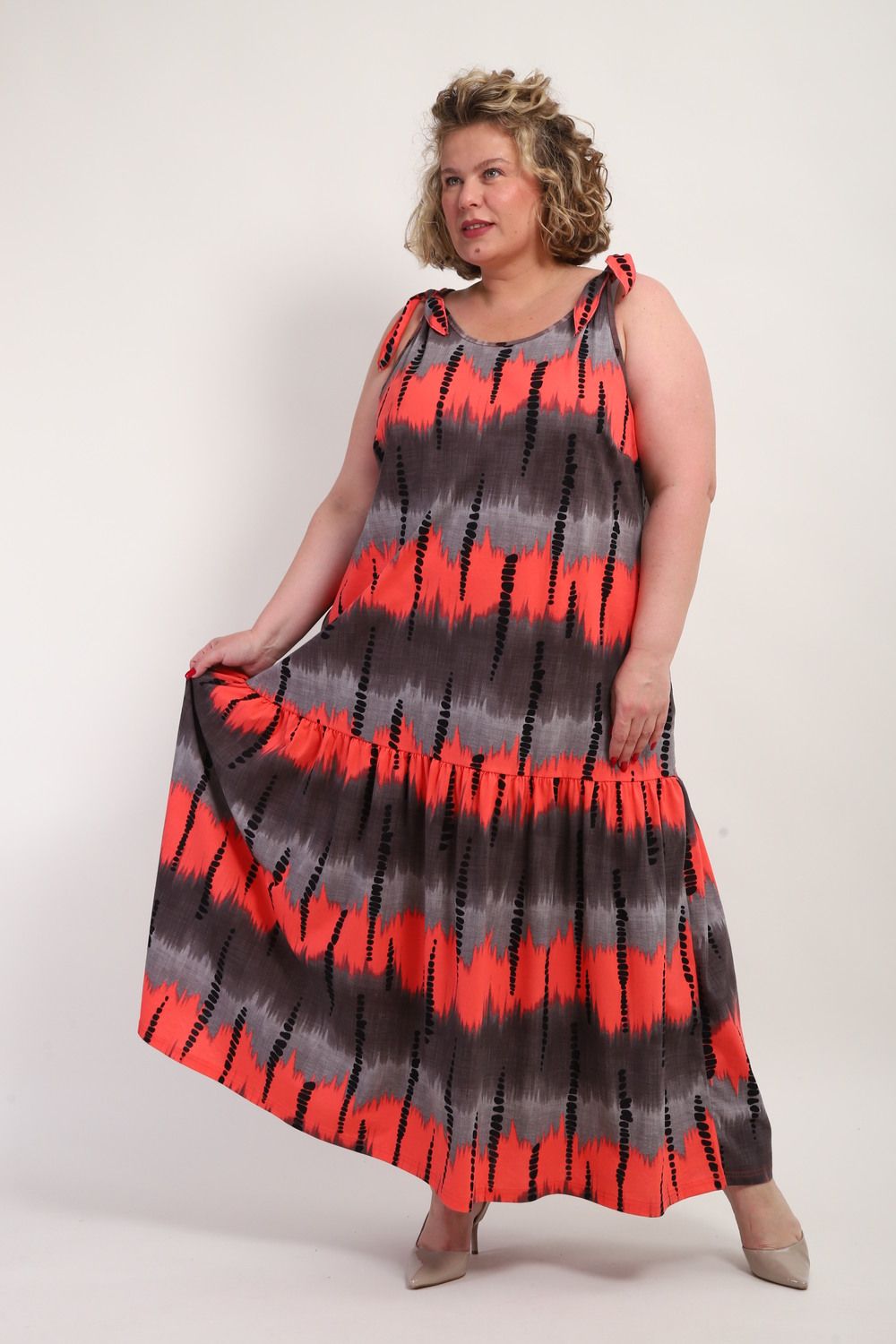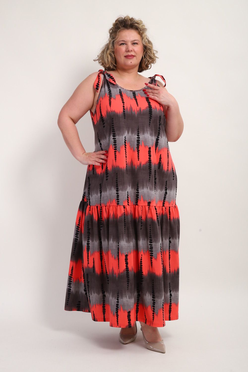 Платье-сарафан летний длинный женское больших размеров — это идеальный выбор для женщин. Он подчеркнет красоту и элегантность каждой женщины, обеспечивая комфорт в повседневной жизни. Изготовленное из легкого хлопка, это платье отличается воздухопроницаемостью, что особенно актуально в жаркую погоду. Длинное платье прекрасно сидит на девушках больших размеров, радуя мягкой текстурой и стильным дизайном. В этом сарафане легко создать эффектный образ, который привлечет внимание окружающих. Хлопок в составе ткани не только приятен на ощупь, но и обеспечивает свободу движений, позволяя наслаждаться летом. Сарафан на широких бретельках станет отличным дополнением к гардеробу женщин, которые ценят моду и комфорт. Носите его с любимыми аксессуарами и обувью, создавая новые образы каждый день.Сарафан женский из полностью натурального нежного ХЛОПКА! Это базовая летняя вещь, идеально подходит для разных ситуаций: на работу и просто на прогулку с подружкой или с детьми, а также в отпуск. Прекрасен для тех, кто хочет подчеркнуть свою талию и для тех, кто напротив предпочитает скрыть недостатки фигуры, благодаря свободному фасону. Красивый и стильный сарафан макси, благодаря своей воздушности и натуральности, сидит свободно и отлично подойдет для беременных и кормящих мам. Модный сарафан миди является трендом среди девушек и женщин высокого и среднего роста. На невысоких девушках он будет смотреться больше как макси. Благодаря длинной юбке и открытым плечам на бретелях, станет удачным решением для вечеринки или праздничного торжества. Сарафанчик шикарно смотрится как с туфлями на каблуке, так и с кроссовками. Покрой трапеция, широкий к низу с широким воланом, натуральная дышащая ткань очень приятная к телу.Ткань не скатывается, комфортная к телу.