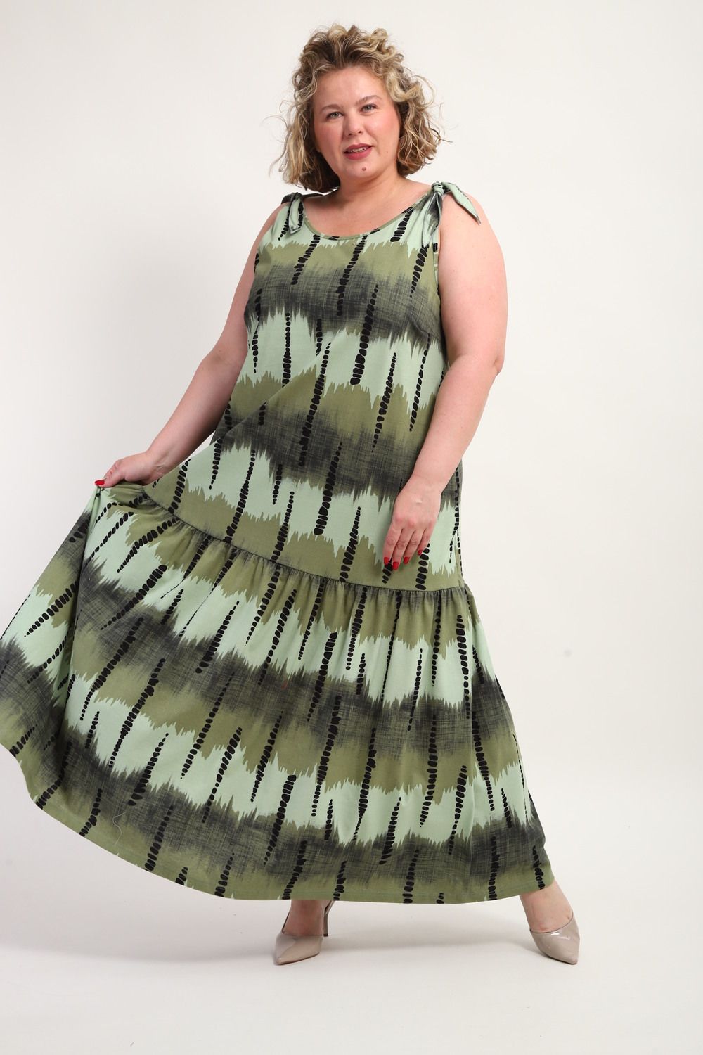 Платье-сарафан летний длинный женское больших размеров — это идеальный выбор для женщин. Он подчеркнет красоту и элегантность каждой женщины, обеспечивая комфорт в повседневной жизни. Изготовленное из легкого хлопка, это платье отличается воздухопроницаемостью, что особенно актуально в жаркую погоду. Длинное платье прекрасно сидит на девушках больших размеров, радуя мягкой текстурой и стильным дизайном. В этом сарафане легко создать эффектный образ, который привлечет внимание окружающих. Хлопок в составе ткани не только приятен на ощупь, но и обеспечивает свободу движений, позволяя наслаждаться летом. Сарафан на широких бретельках станет отличным дополнением к гардеробу женщин, которые ценят моду и комфорт. Носите его с любимыми аксессуарами и обувью, создавая новые образы каждый день.Сарафан женский из полностью натурального нежного ХЛОПКА! Это базовая летняя вещь, идеально подходит для разных ситуаций: на работу и просто на прогулку с подружкой или с детьми, а также в отпуск. Прекрасен для тех, кто хочет подчеркнуть свою талию и для тех, кто напротив предпочитает скрыть недостатки фигуры, благодаря свободному фасону. Красивый и стильный сарафан макси, благодаря своей воздушности и натуральности, сидит свободно и отлично подойдет для беременных и кормящих мам. Модный сарафан миди является трендом среди девушек и женщин высокого и среднего роста. На невысоких девушках он будет смотреться больше как макси. Благодаря длинной юбке и открытым плечам на бретелях, станет удачным решением для вечеринки или праздничного торжества. Сарафанчик шикарно смотрится как с туфлями на каблуке, так и с кроссовками. Покрой трапеция, широкий к низу с широким воланом, натуральная дышащая ткань очень приятная к телу.Ткань не скатывается, комфортная к телу.