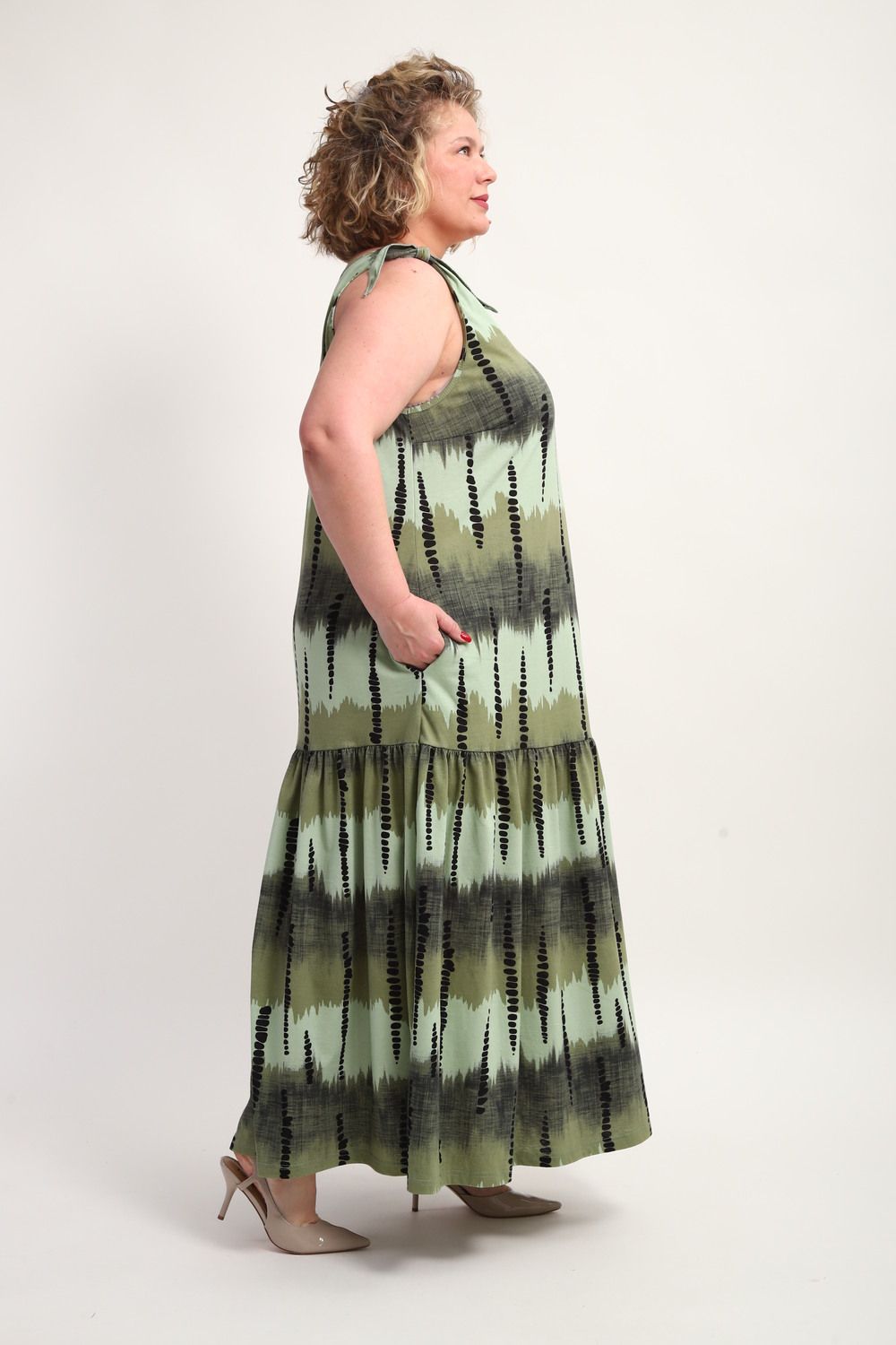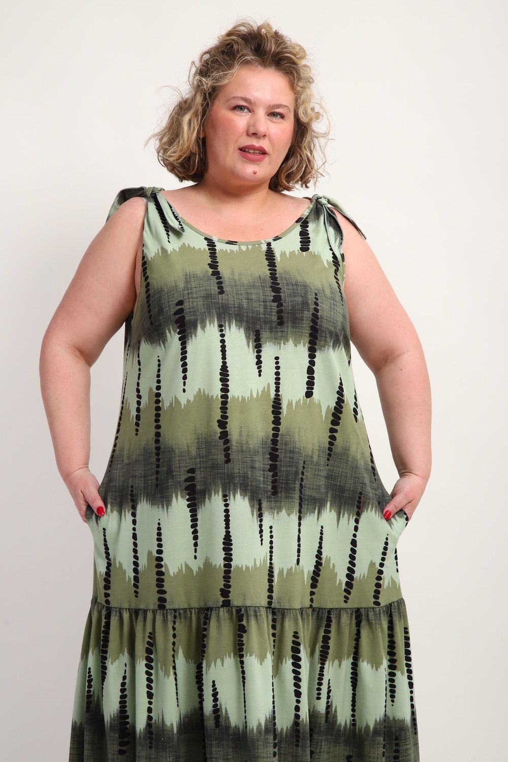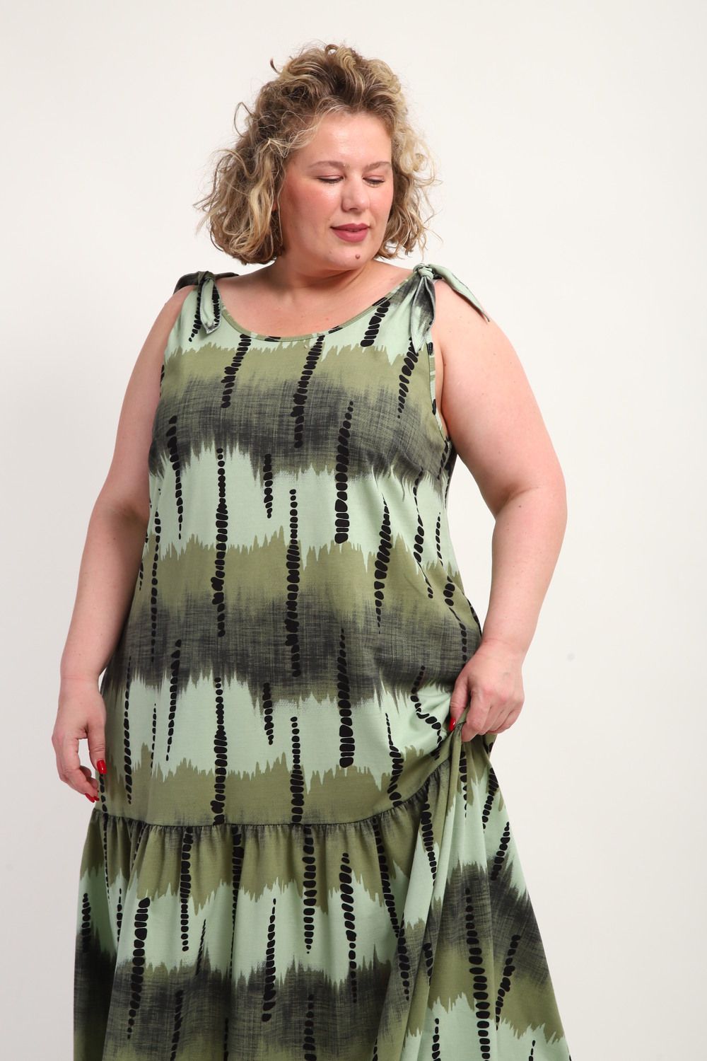 Платье сарафан 002 - Зеленый бусы