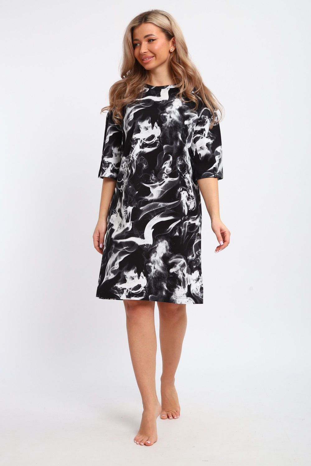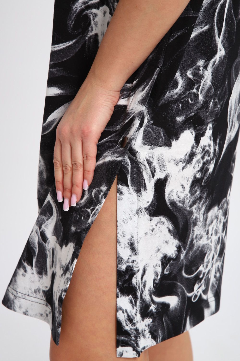 Платье-туника на клепках ТПК-01 - черный-белый Дым