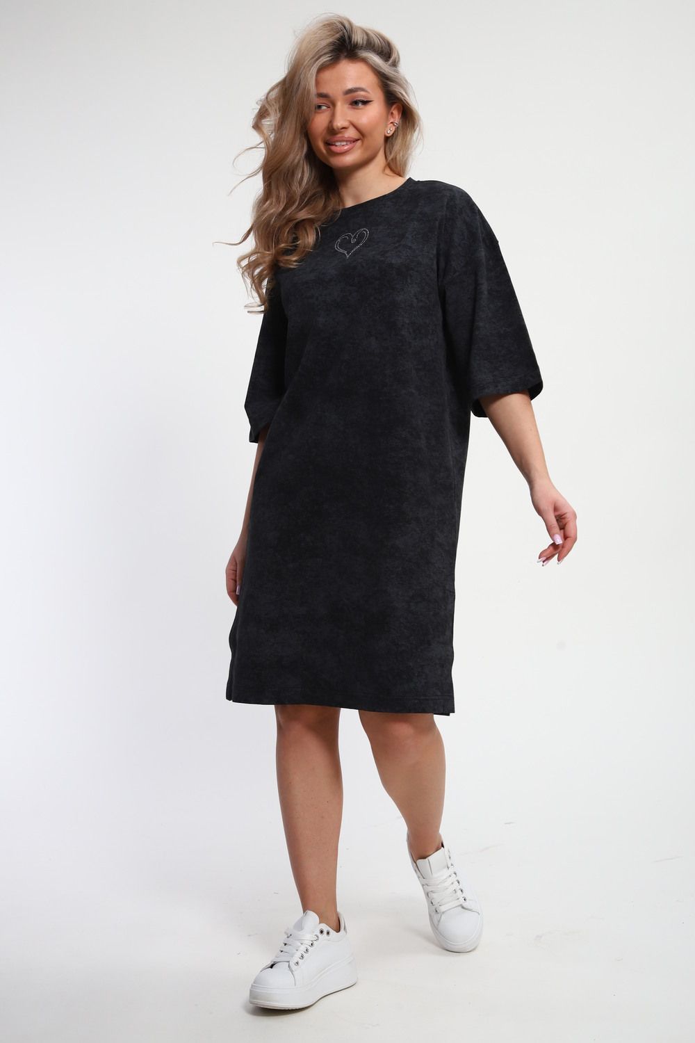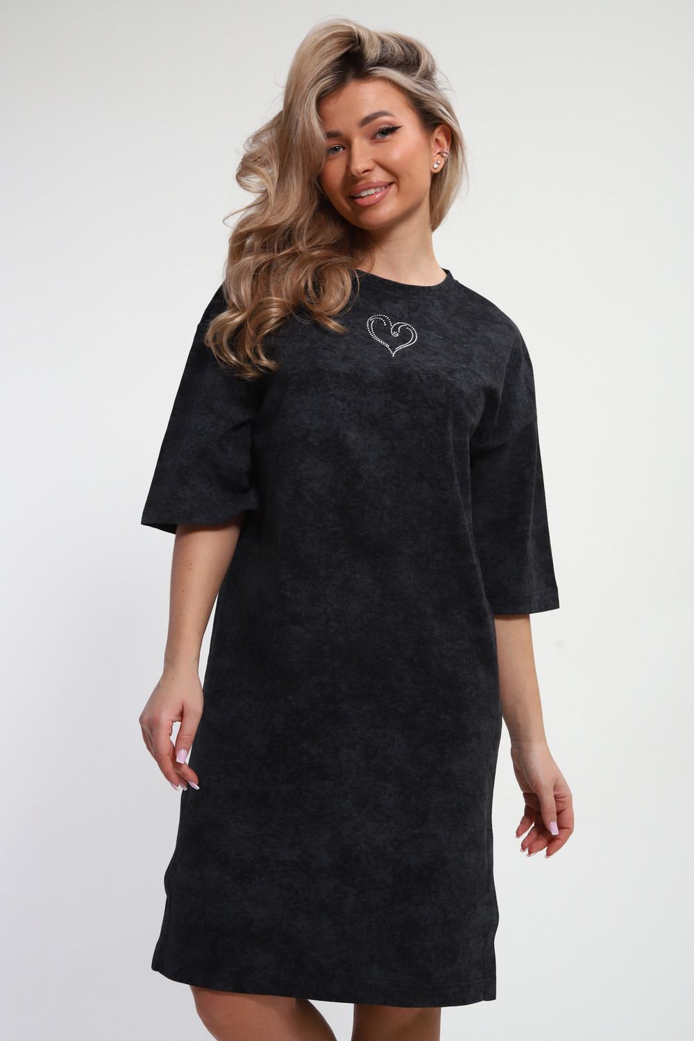 Платье туника варенка с принтом Сердце ТП-02 - темно-серый