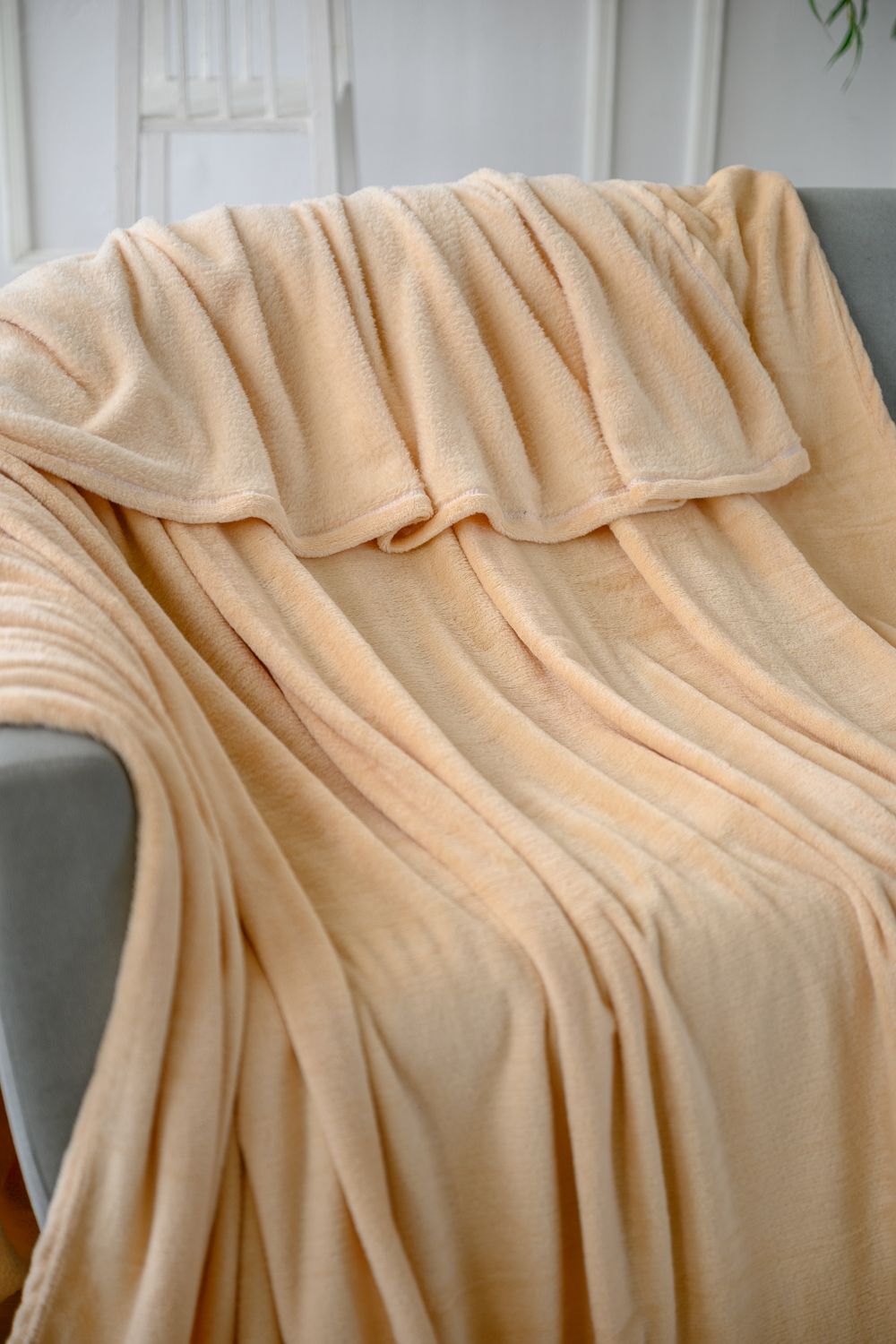 Плед покрывало однотонный Велсофт - кремовый