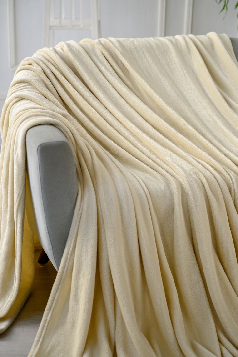 Плед покрывало однотонный Велсофт - молочный