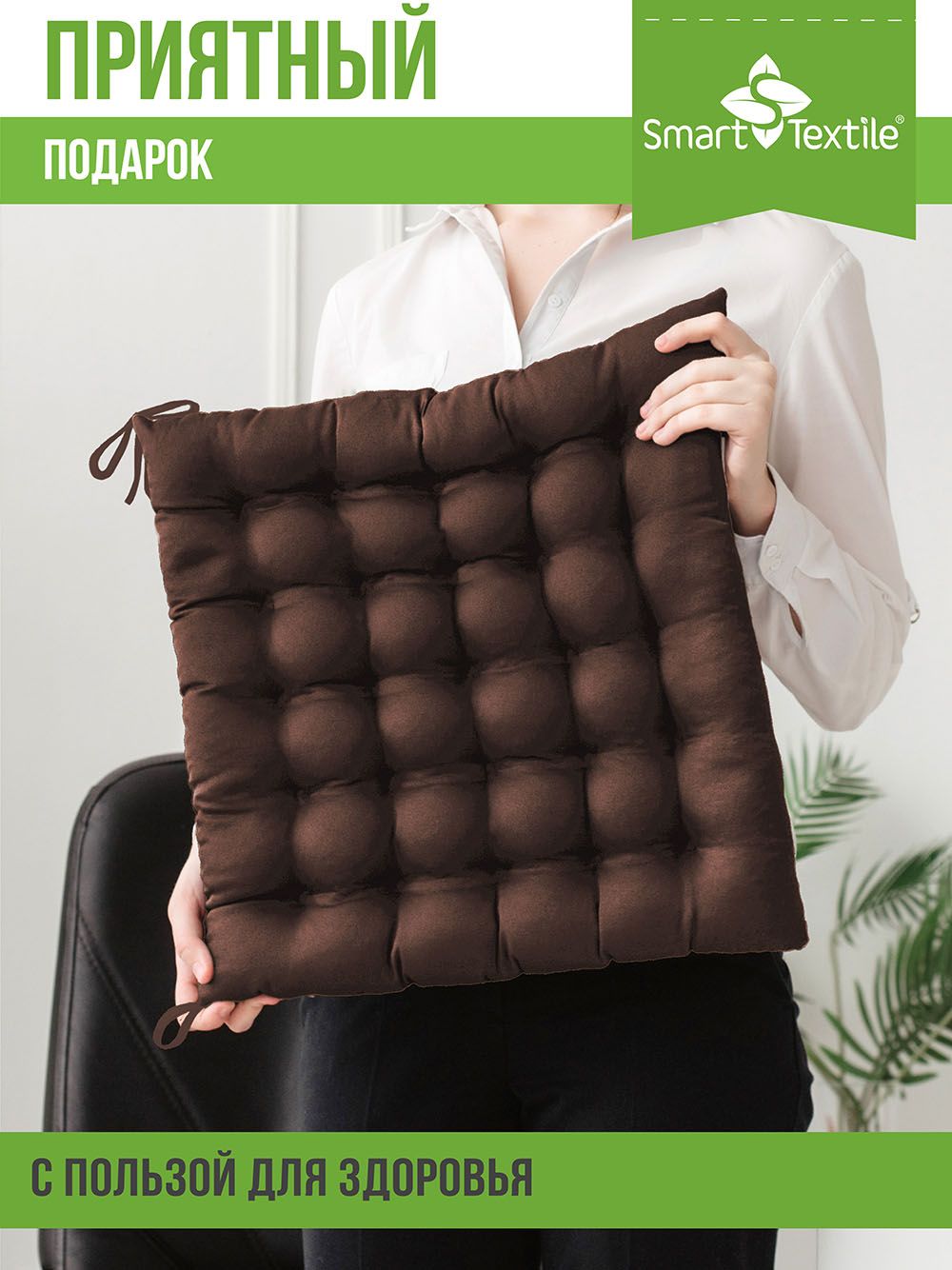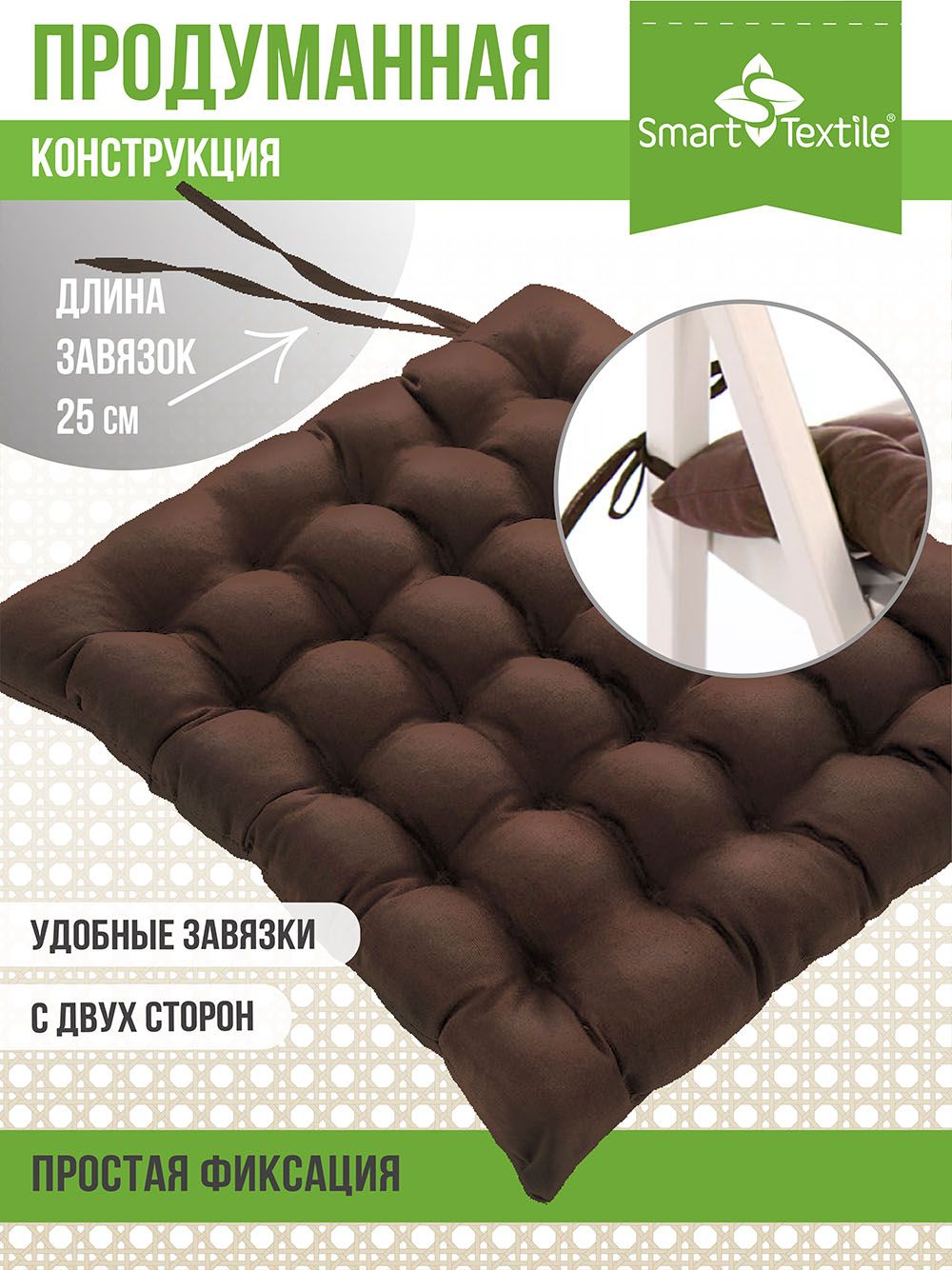 Подушка на сиденье Уют с завязками, р.40х40см - коричневый