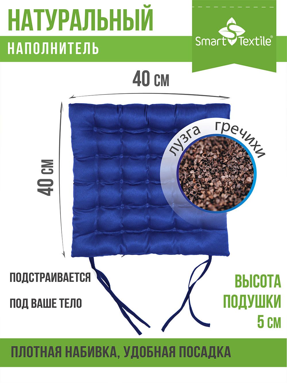Благодаря форме пошива в виде объемных ячеек и уникальным природным свойствам наполнителя из лузги гречихи, сидеть на такой подушке удобно и полезно. С завязками для стула. Чехол: смесовая ткань. Наполнитель: лузга гречихи.
