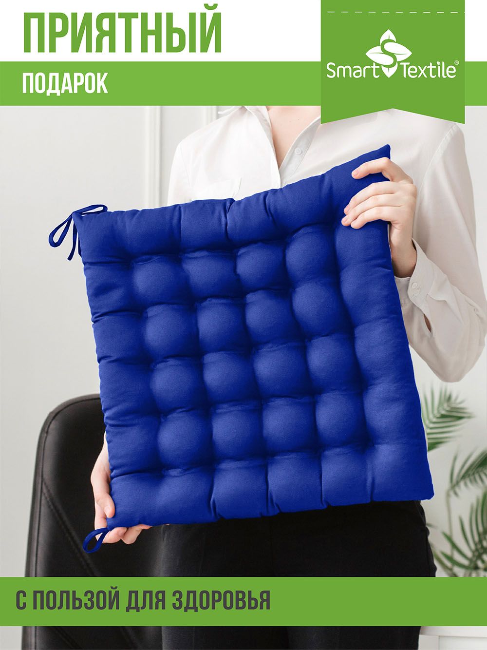 Подушка на сиденье Уют с завязками, р.40х40см - синий
