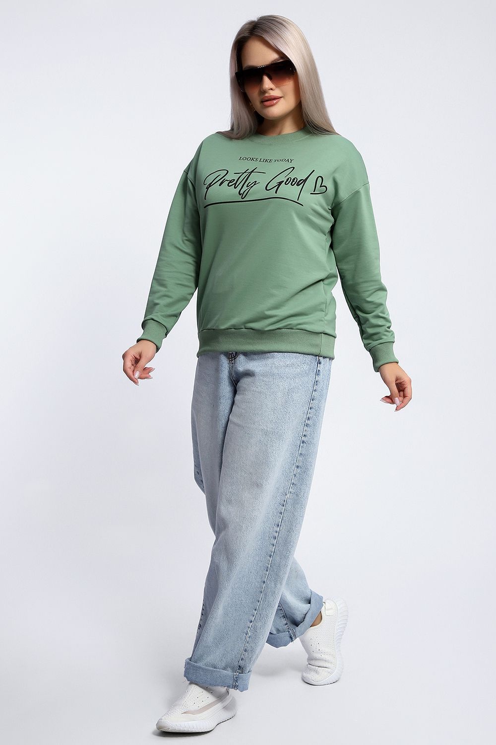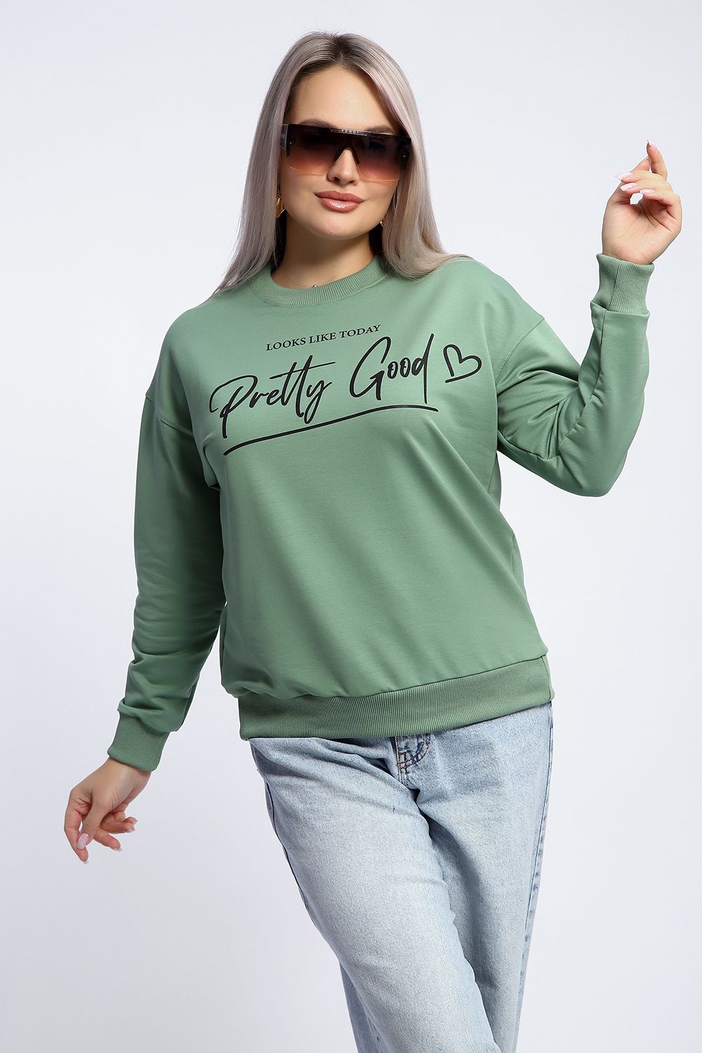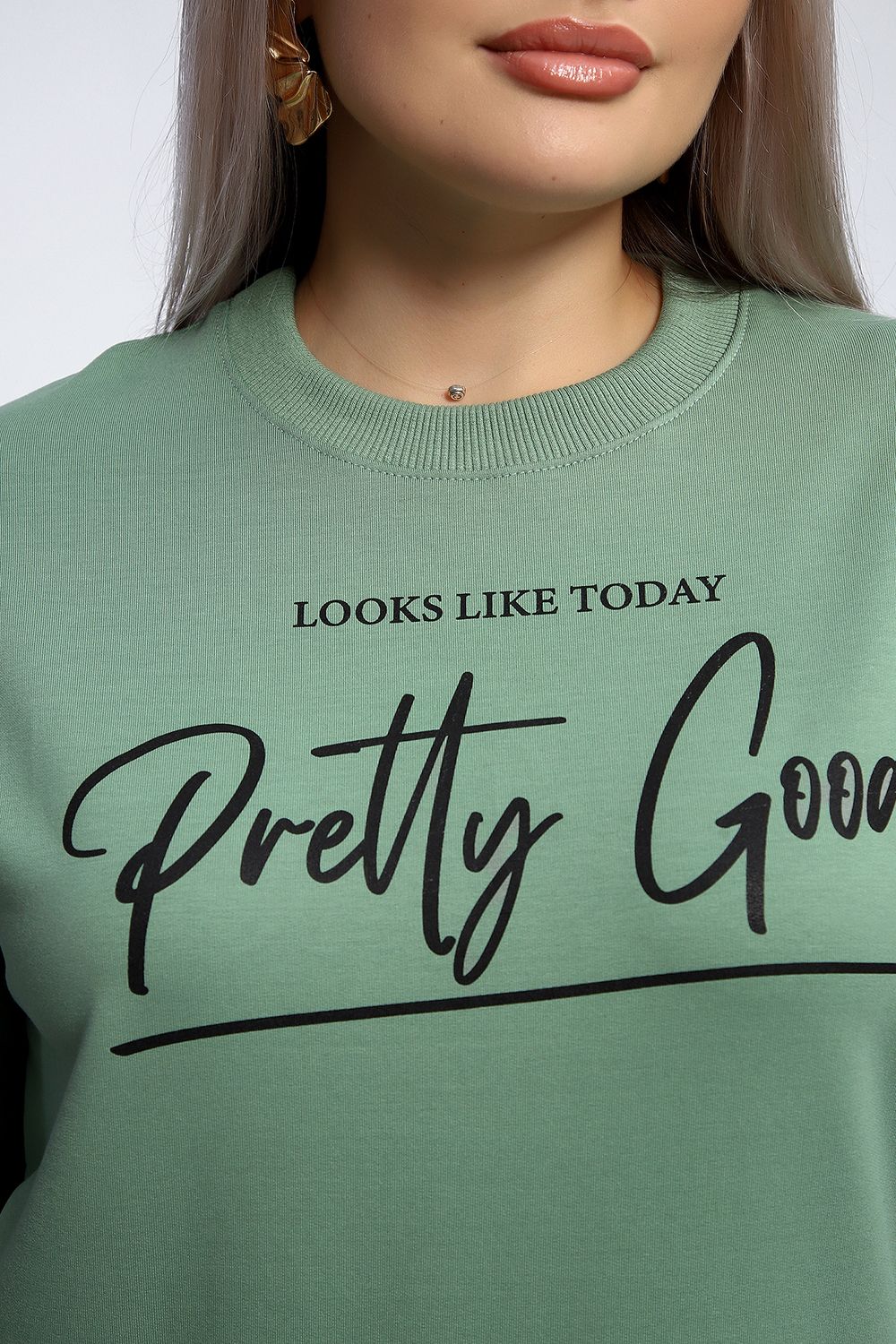 Толстовка свободного кроя "оверсайз" со спущенной линией плеча прекрасный вариант для прохладной погоды! Мягкое, эластичное кашкорсе в тон ткани использовано для отделки горловины, манжет и пояса. На полочке декоративный принт.