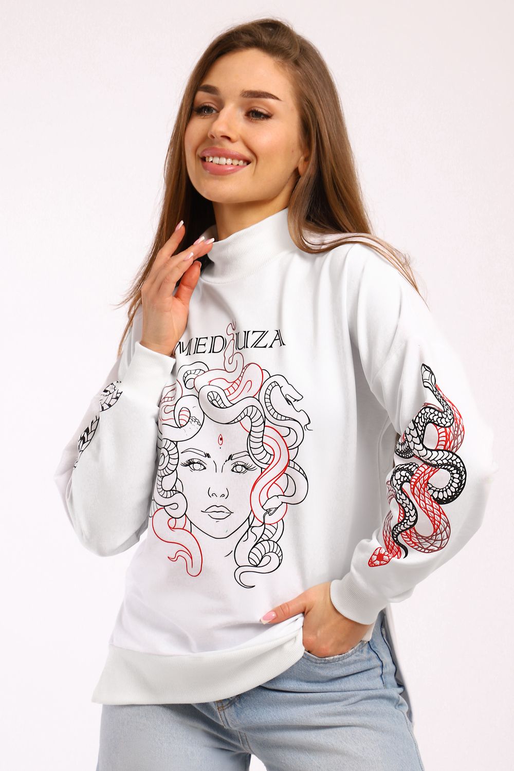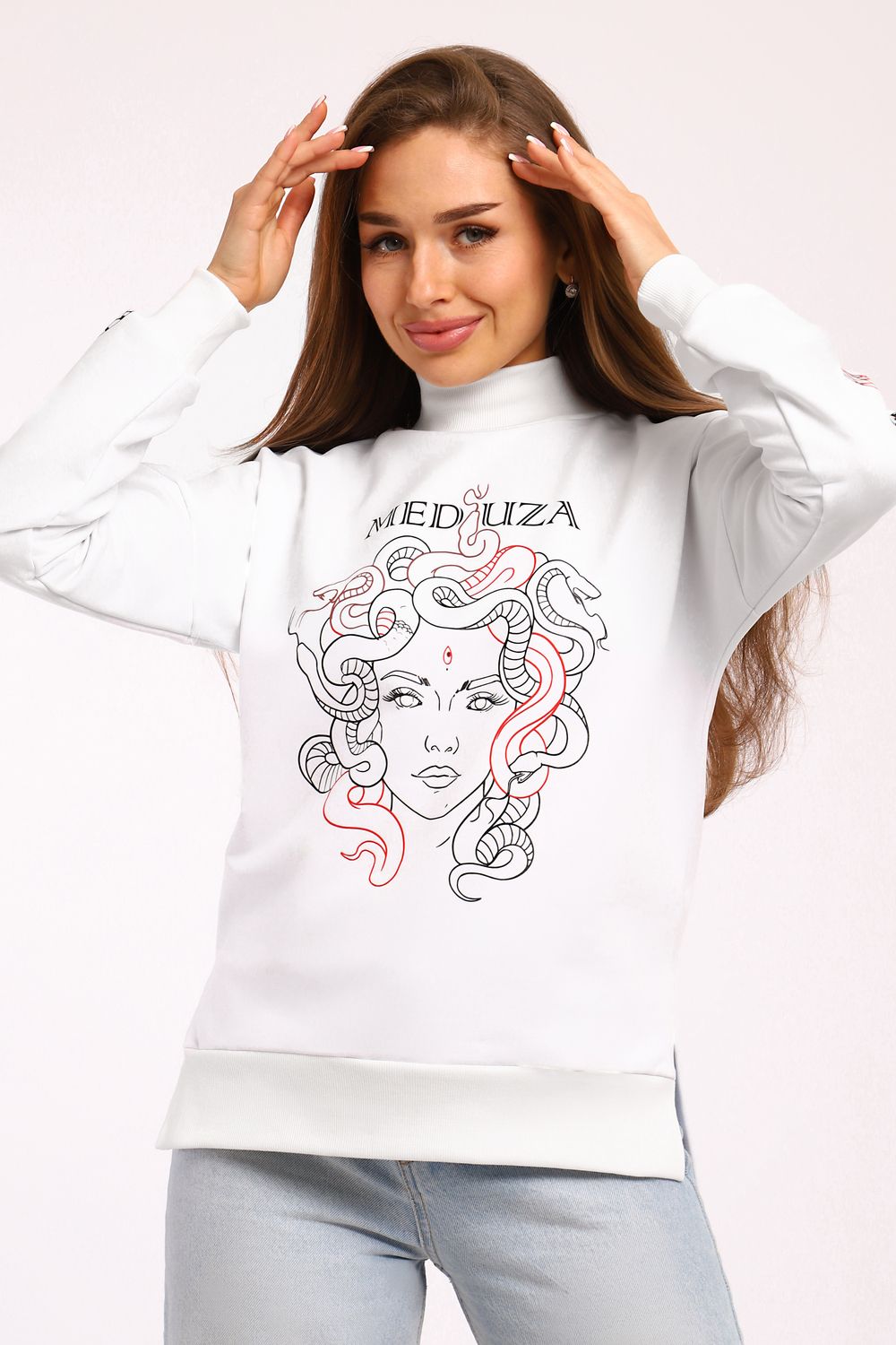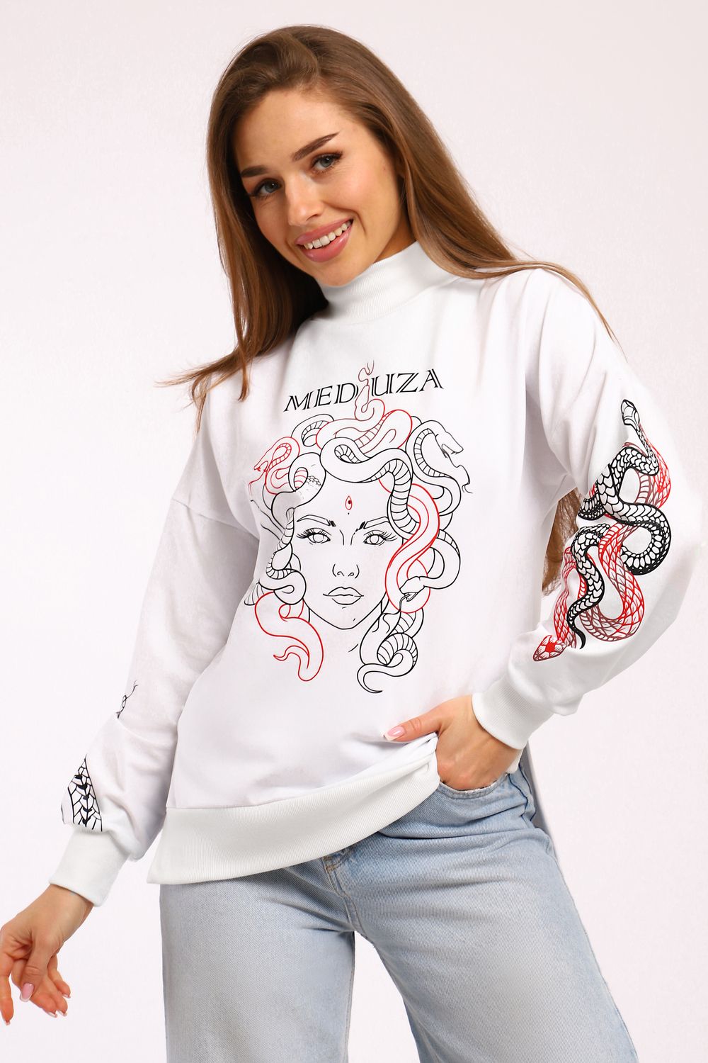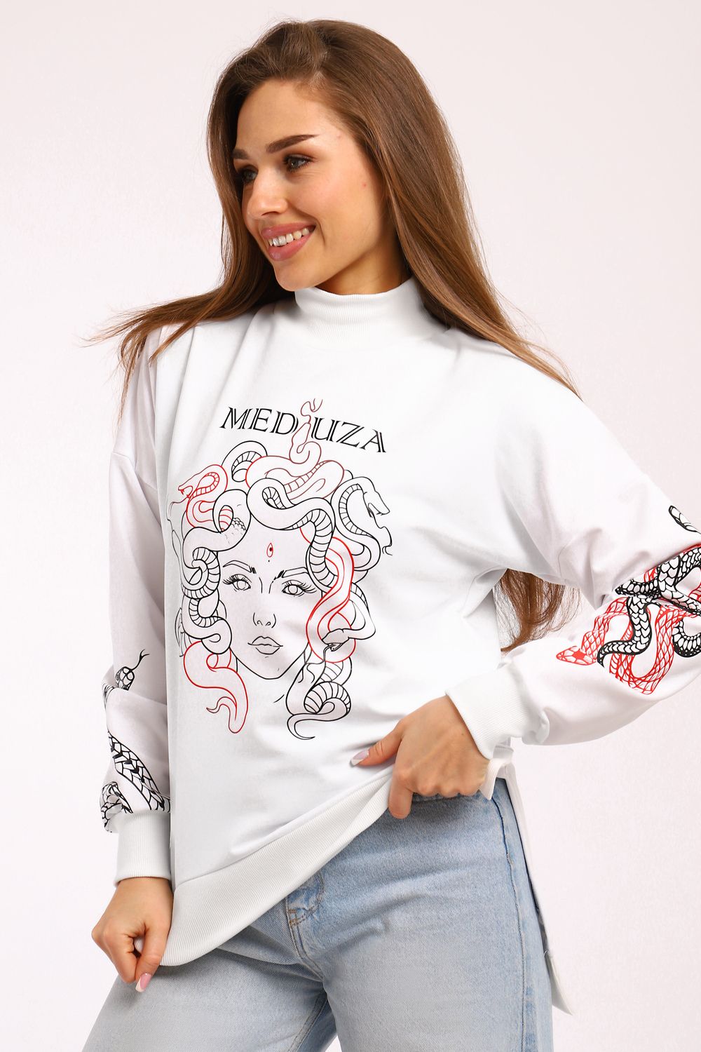 Толстовка с принтом KEM – это стильное и комфортное решение для повседневного образа. Модель выполнена из мягкой и приятной к телу ткани, состоящей из 71% хлопка, 24% полиэстера и 5% лайкры, что обеспечивает свободу движений и удобство в носке. Оригинальный принт медуза на толстовке добавляет индивидуальности и яркости вашему стилю. Благодаря разрезам по бокам толстовка прекрасно садится на фигуру, подчеркивая ее достоинства. Модель без капюшона и застежки, что делает ее еще более удобной для носки.