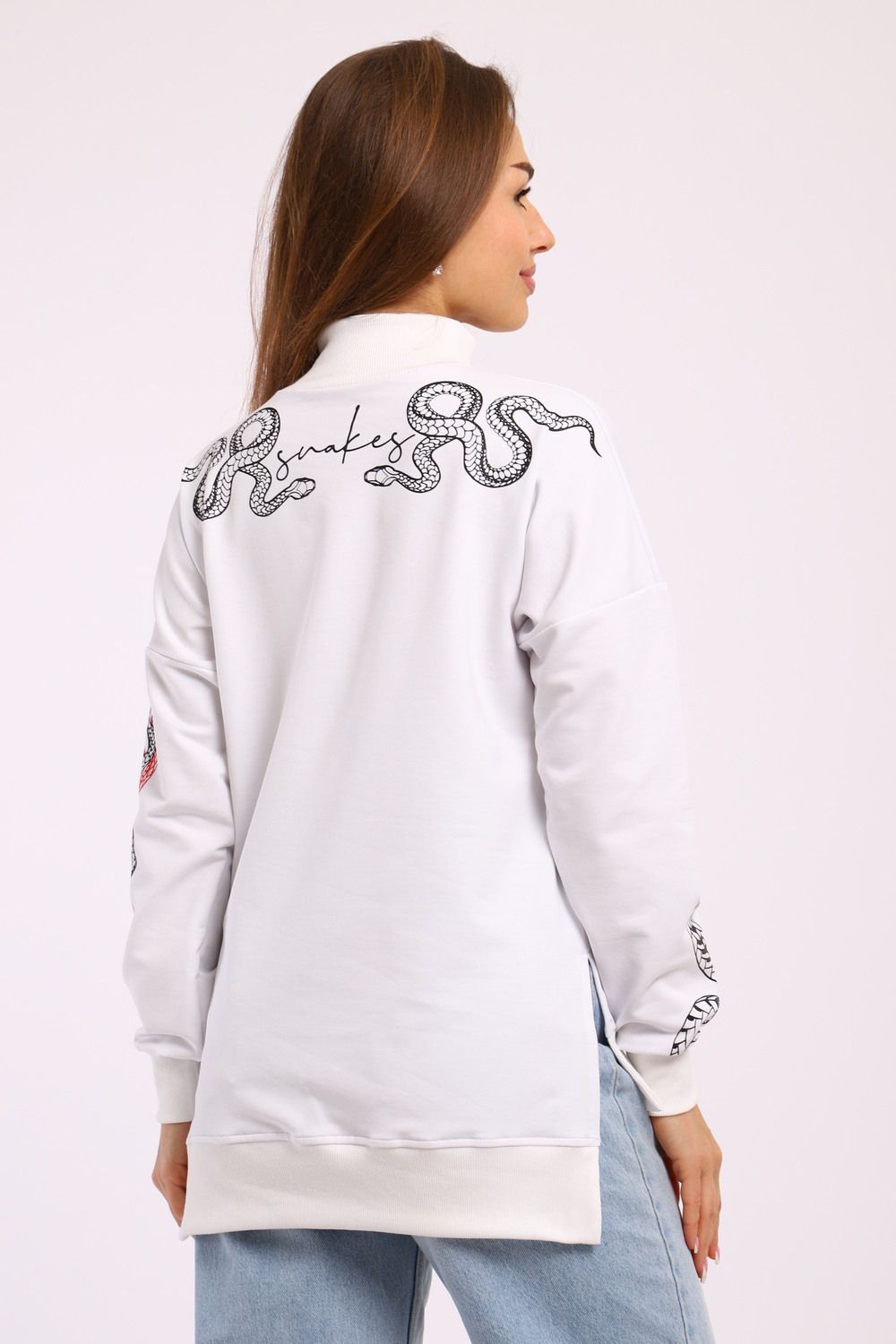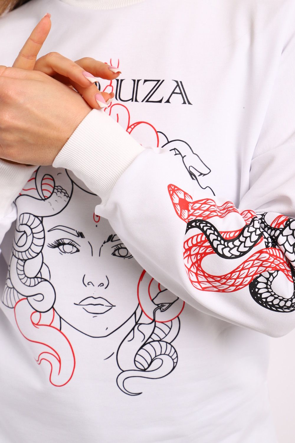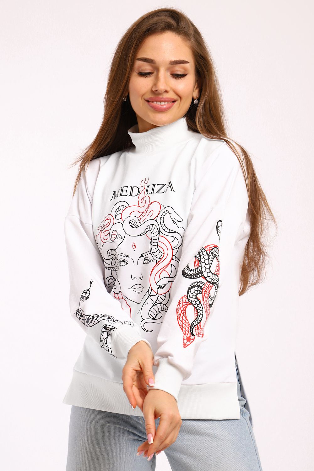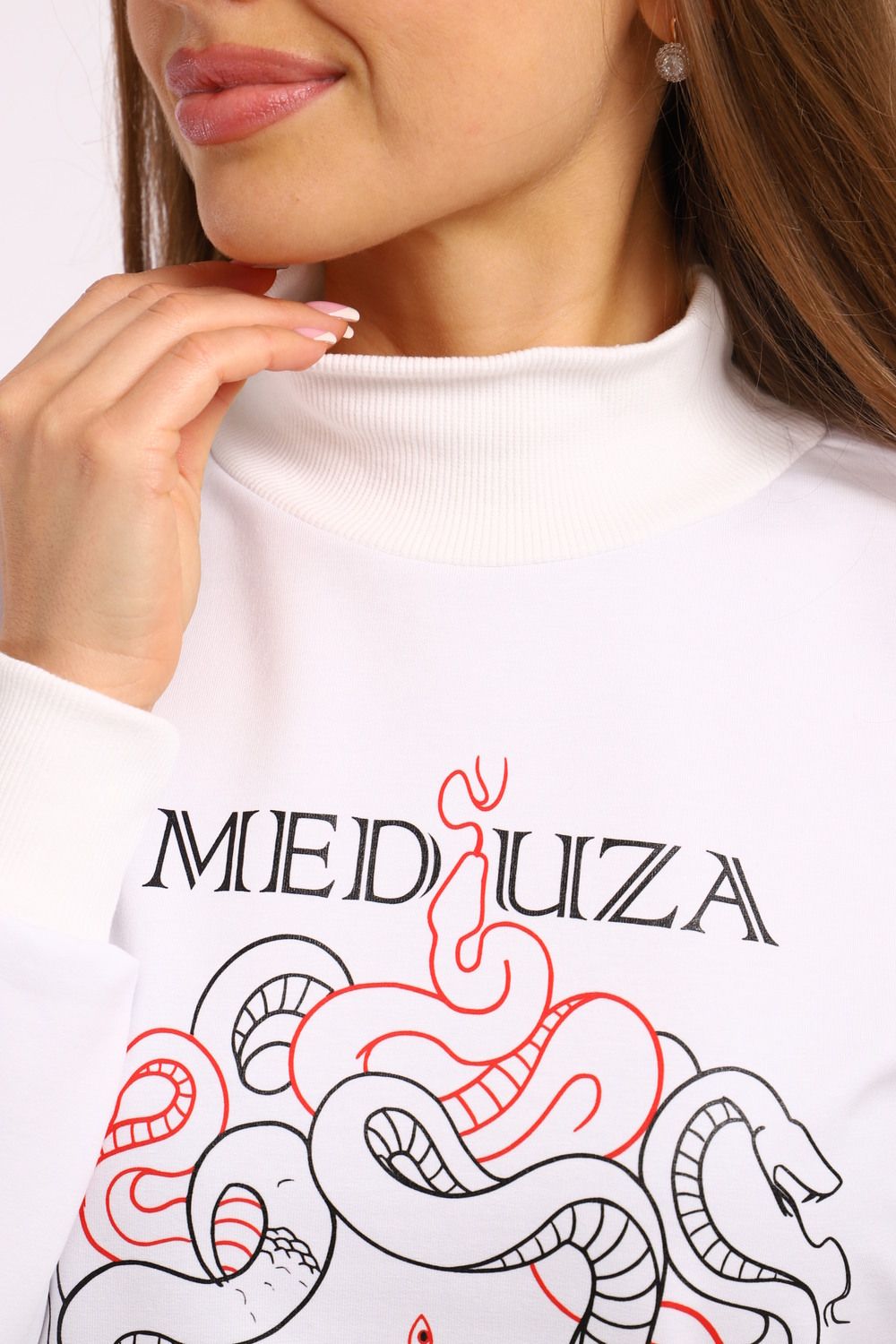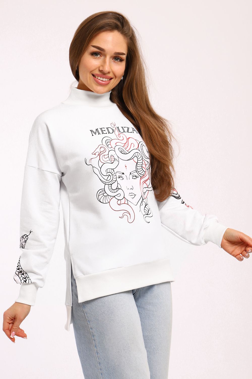 Толстовка с принтом KEM – это стильное и комфортное решение для повседневного образа. Модель выполнена из мягкой и приятной к телу ткани, состоящей из 71% хлопка, 24% полиэстера и 5% лайкры, что обеспечивает свободу движений и удобство в носке. Оригинальный принт медуза на толстовке добавляет индивидуальности и яркости вашему стилю. Благодаря разрезам по бокам толстовка прекрасно садится на фигуру, подчеркивая ее достоинства. Модель без капюшона и застежки, что делает ее еще более удобной для носки.