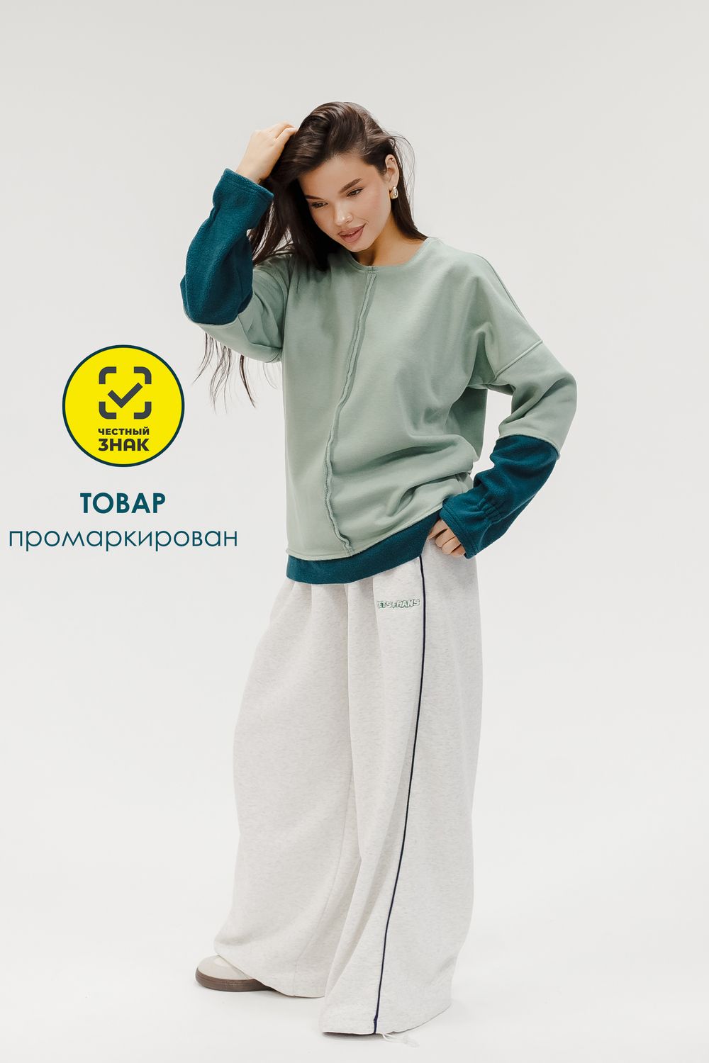 Толстовка оверсайз выполнена из приятной на теле и практичной ткани футер с мехом. Состав 80% хлопок и 20% полиэстер обеспечивает комфорт, хорошую воздухопроницаемость и долгий срок службы изделия. Размер с 44 по 58 благодаря свободному крою идеально подходит для разных типов фигуры и легко сидит как в расслабленном оверсайз, так и в более аккуратном силуэте. Модель толстовки сконструирована по авторскому дизайну из двух расцветок. Основной цвет дополняет другая расцветка на рукавах, по низу изделия и чуть на воротнике. Первый элемент это воротник с необработанным краем, который добавляет современной графики образу, а рукав на резинке удерживает тепло и придаёт аккуратную посадку. Толстовка тёплая и приятная к телу, она выполнена с начесом для дополнительного уюта и комфорта в холодное время года. Начес не линяет и не образует каташки, что сохраняет презентабельный вид даже после многократных стирок и активной носки. Однотонная расцветка делает вещь универсальной базовой частью гардероба и даёт свободу для стильных комплектов. Модель выдержана в стиле y2k, поэтому отлично смотрится в сочетании с ретро-элементами и современными акцентами. Свитшот прекрасно вписывается в спортивный стиль и одновременно служит надёжной базовой вещью для повседневной носки. Её легко комбинировать с джинсами или леггинсами, а также с юбками и шортами для более смелых образов. Эта толстовка — практичное решение для тех, кто ценит тепло, комфорт и актуальный городской стиль в одном изделии.