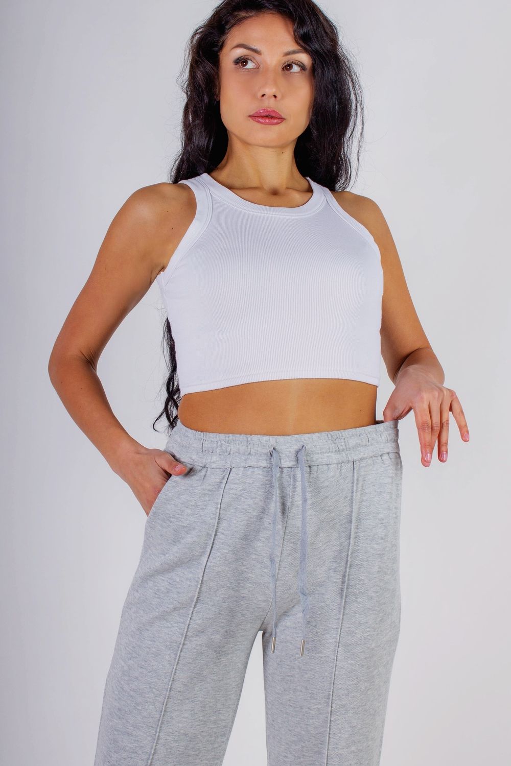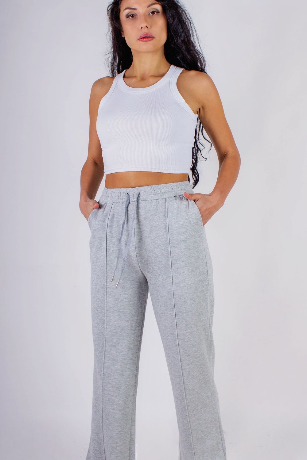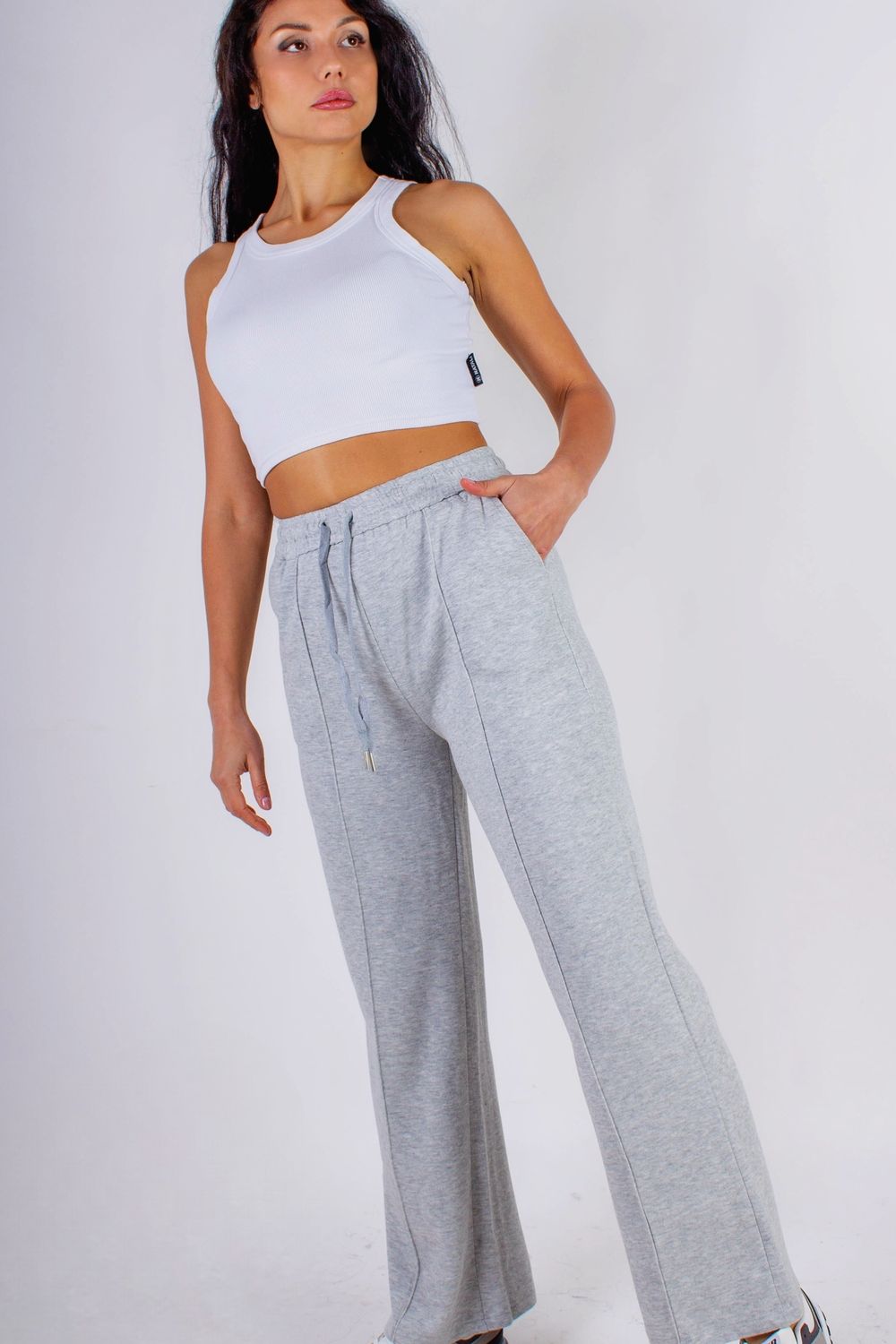 Трикотажные брюки со стрелкой, на резинке - серый