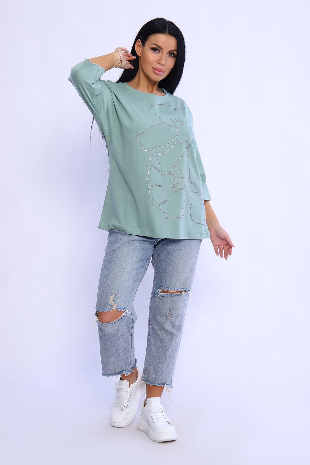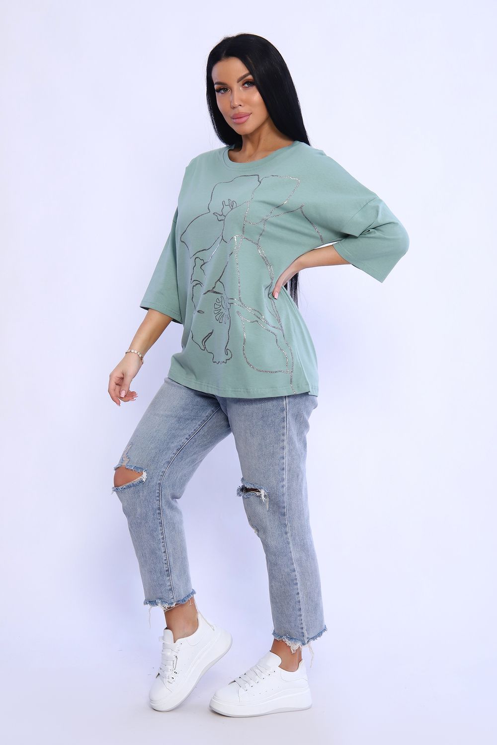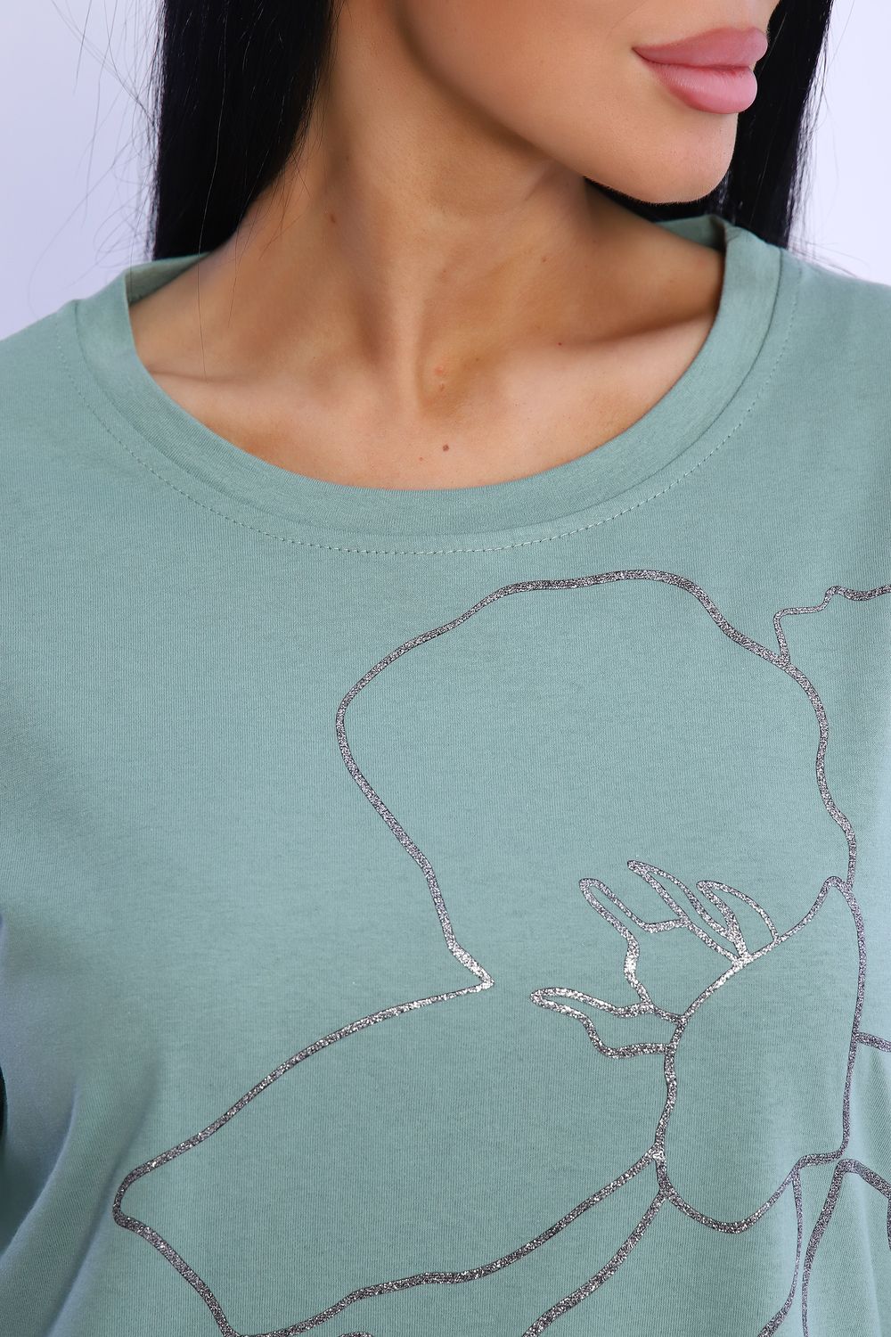 Туника из натурального хлопка прекрасный вариант для повседневного образа. Будет комфортна и как базовый вариант к классическим брючкам, так и к стилю "спортшик". Принт в виде большого цветка лилии с использованием глиттера и техники объёмной печати украшает модель, придавая ей изысканный вид. Обработка деталей вкруговую с закрепкой, рукав длиной 3/4, горловина втачная из основной ткани. Большие размеры!