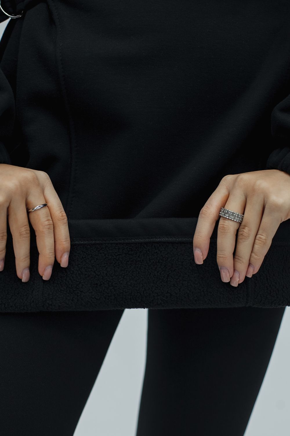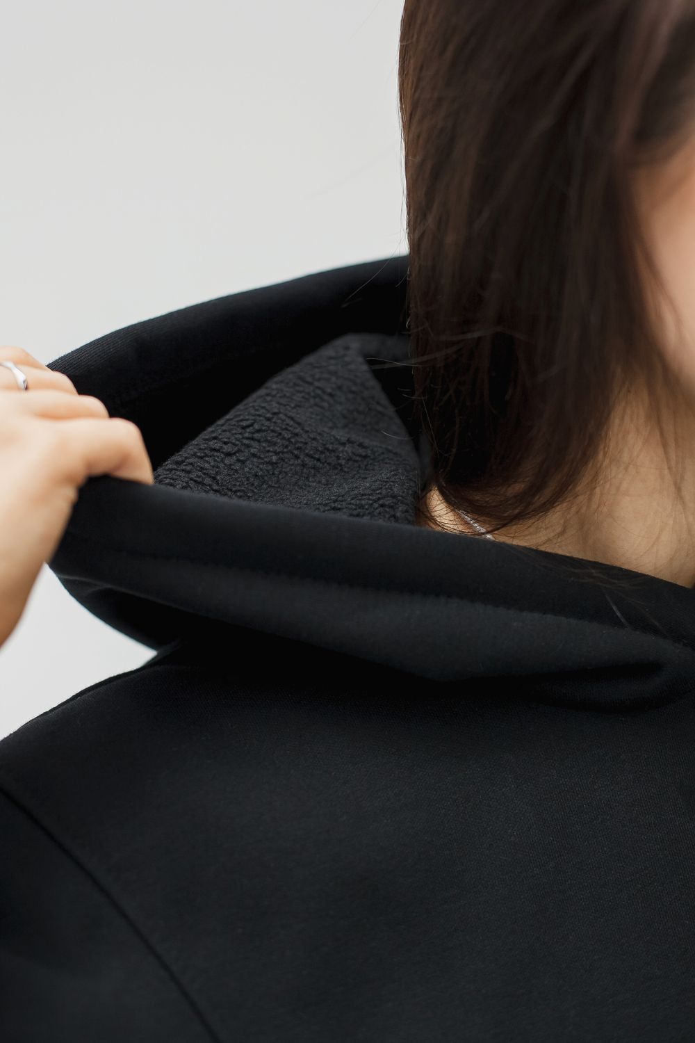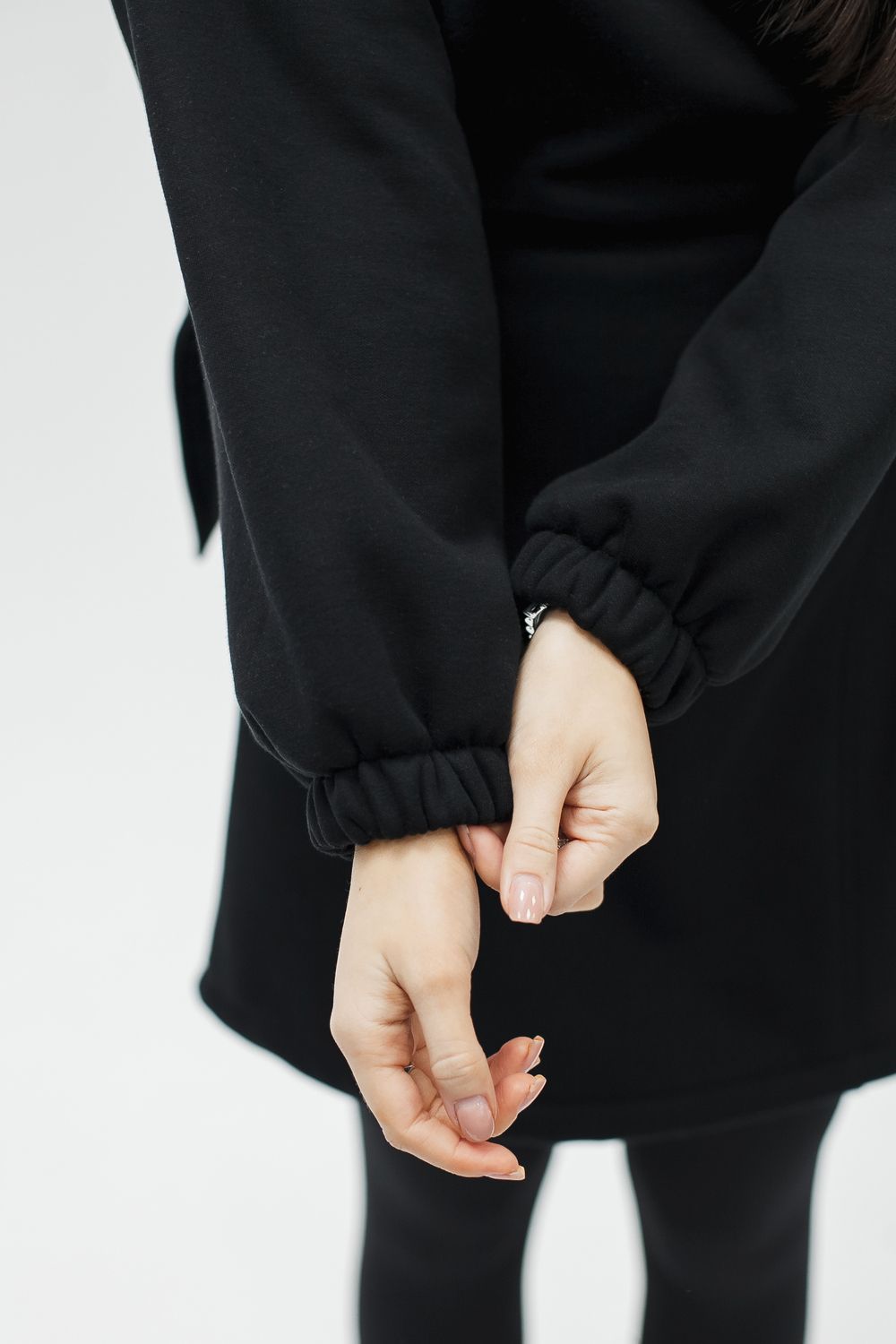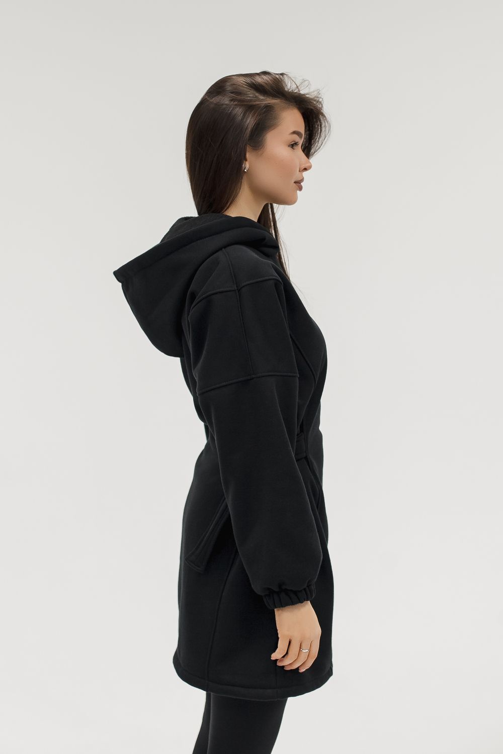 Туника женская теплая с капюшоном и хлястикамии - черный